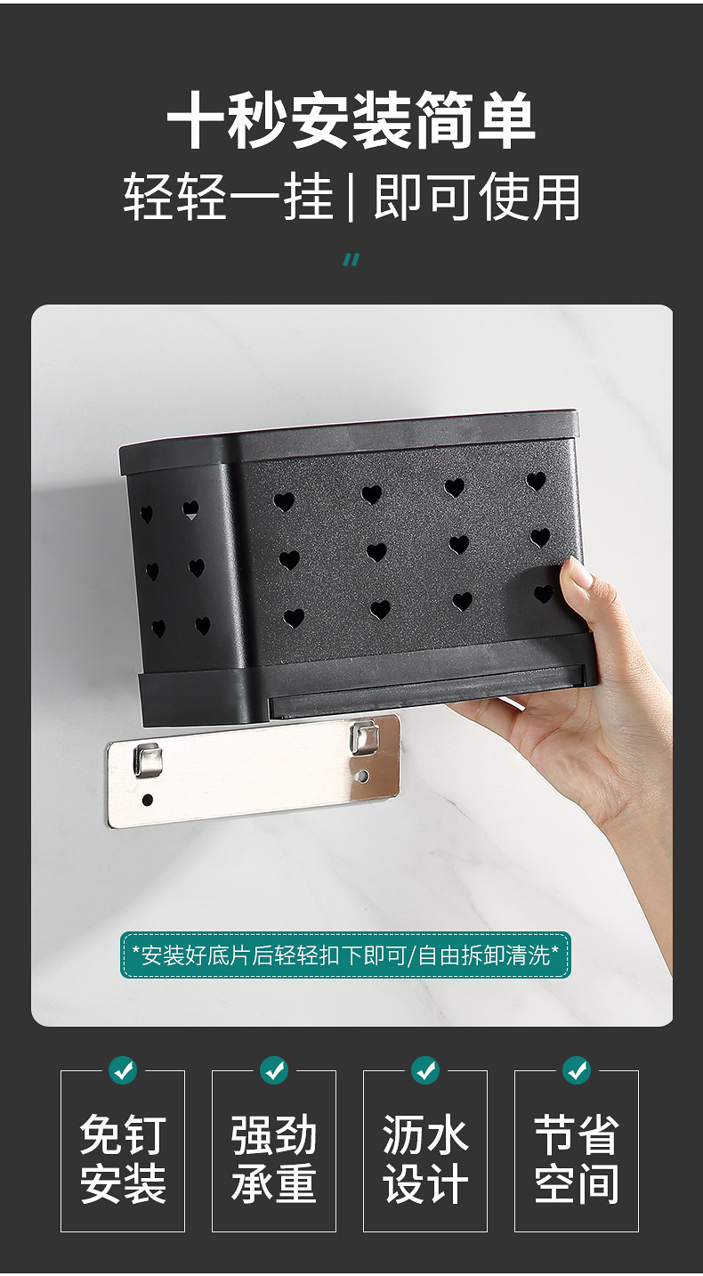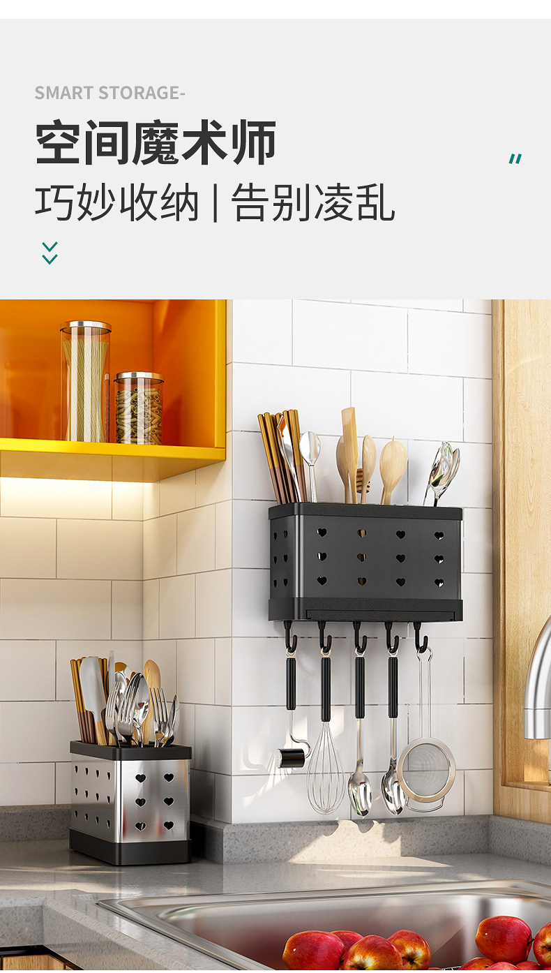 • 고리가 달린 고급 젓가락 꽂이(검은색), 벽걸이 버전