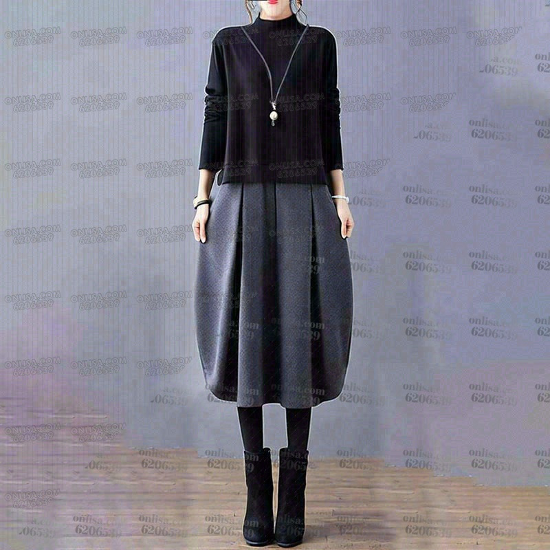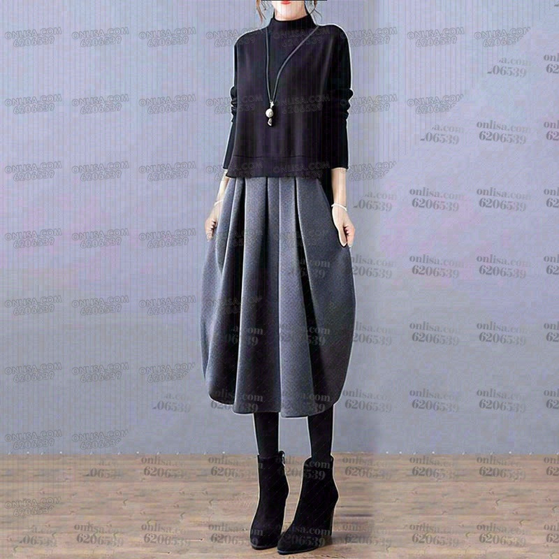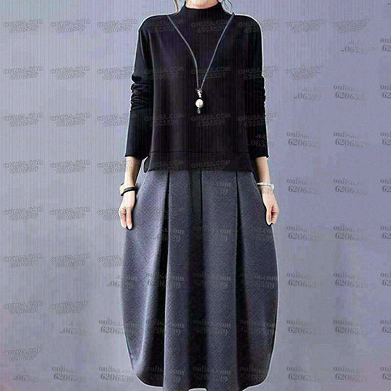 일본 승무원 긴 소매 가짜 투피스 원피스