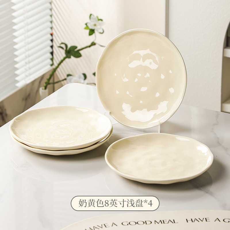 크림 스타일 세라믹 접시 가정용 2025 새로운 스타일 8 인치 딥 접시 디스크 식기