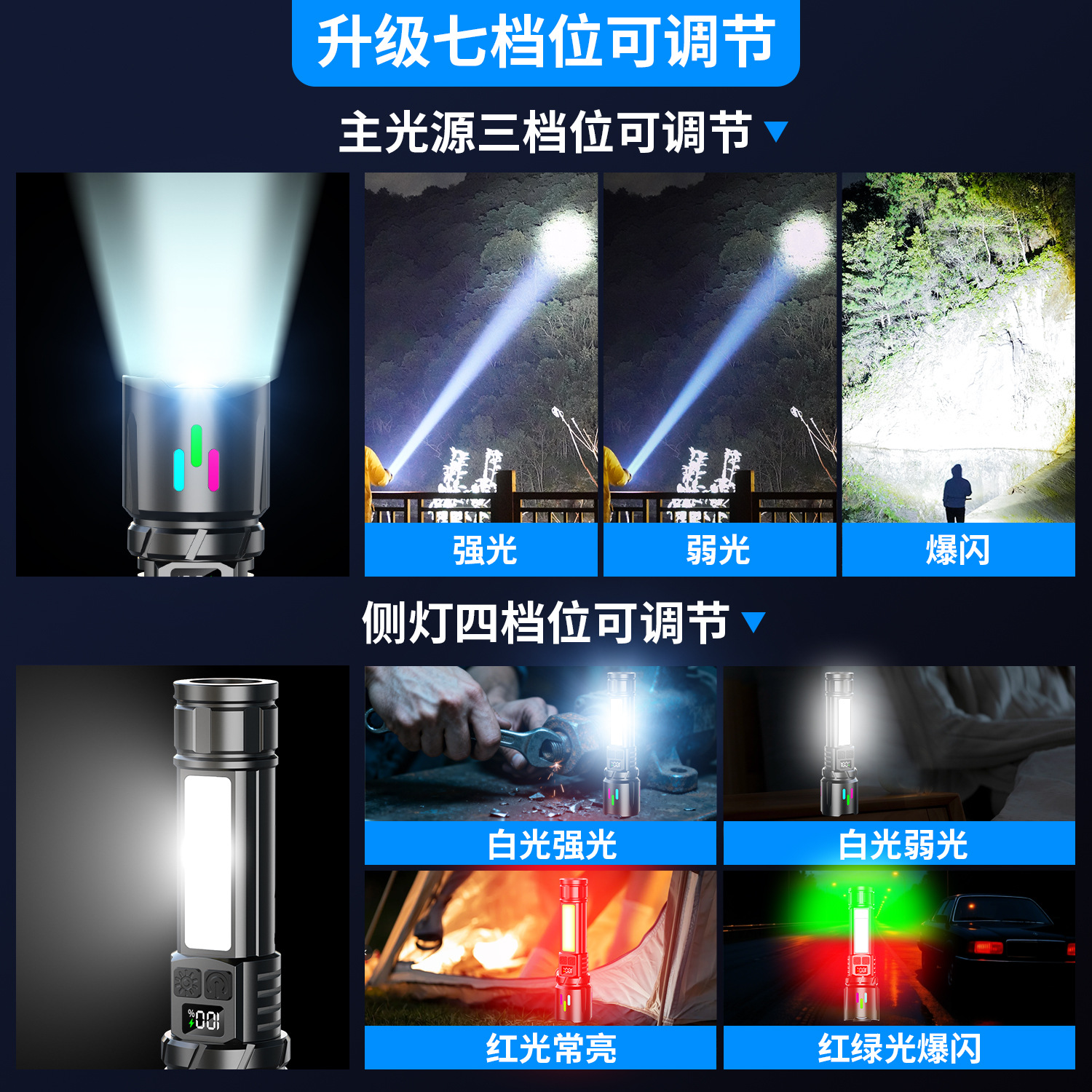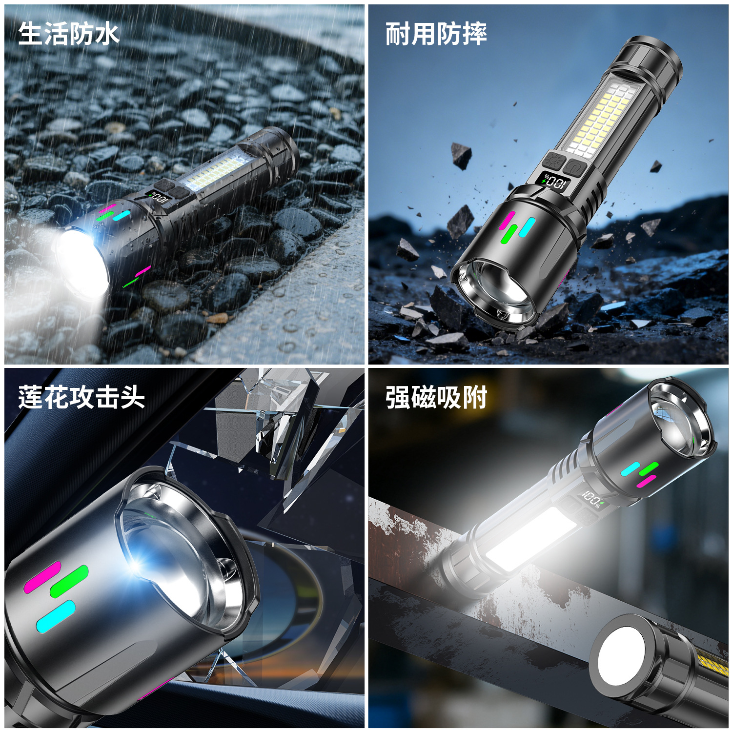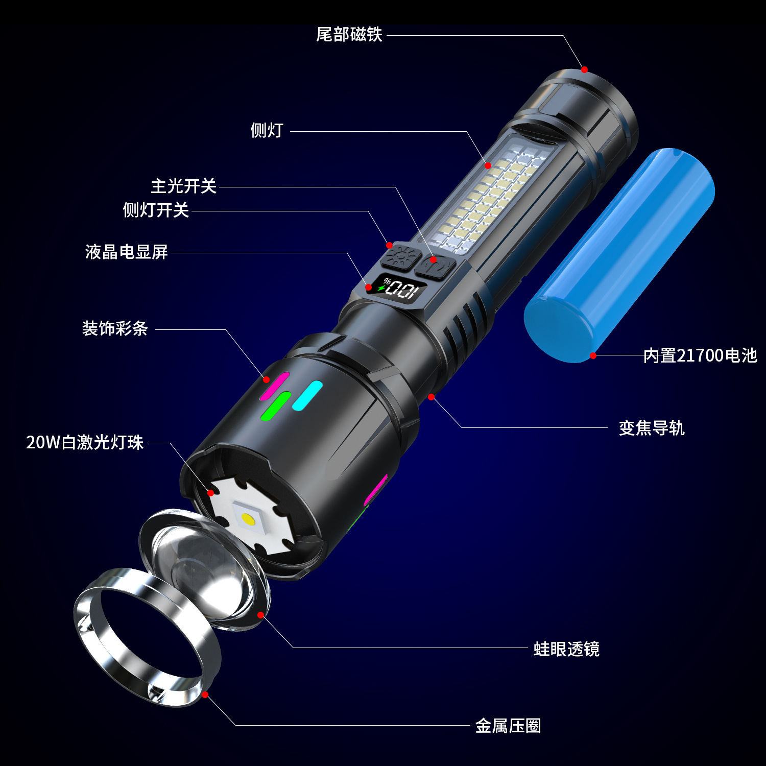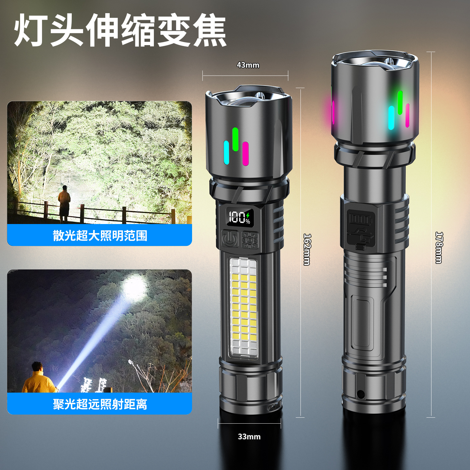 국경을 넘는 새로운 모델의 레이저 장거리 야외용 줌 디지털 디스플레이 COB 사이드 라이트 작업등, 후면 자석, 직접 충전식 손전등스토어 가기