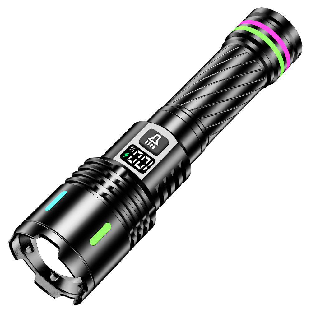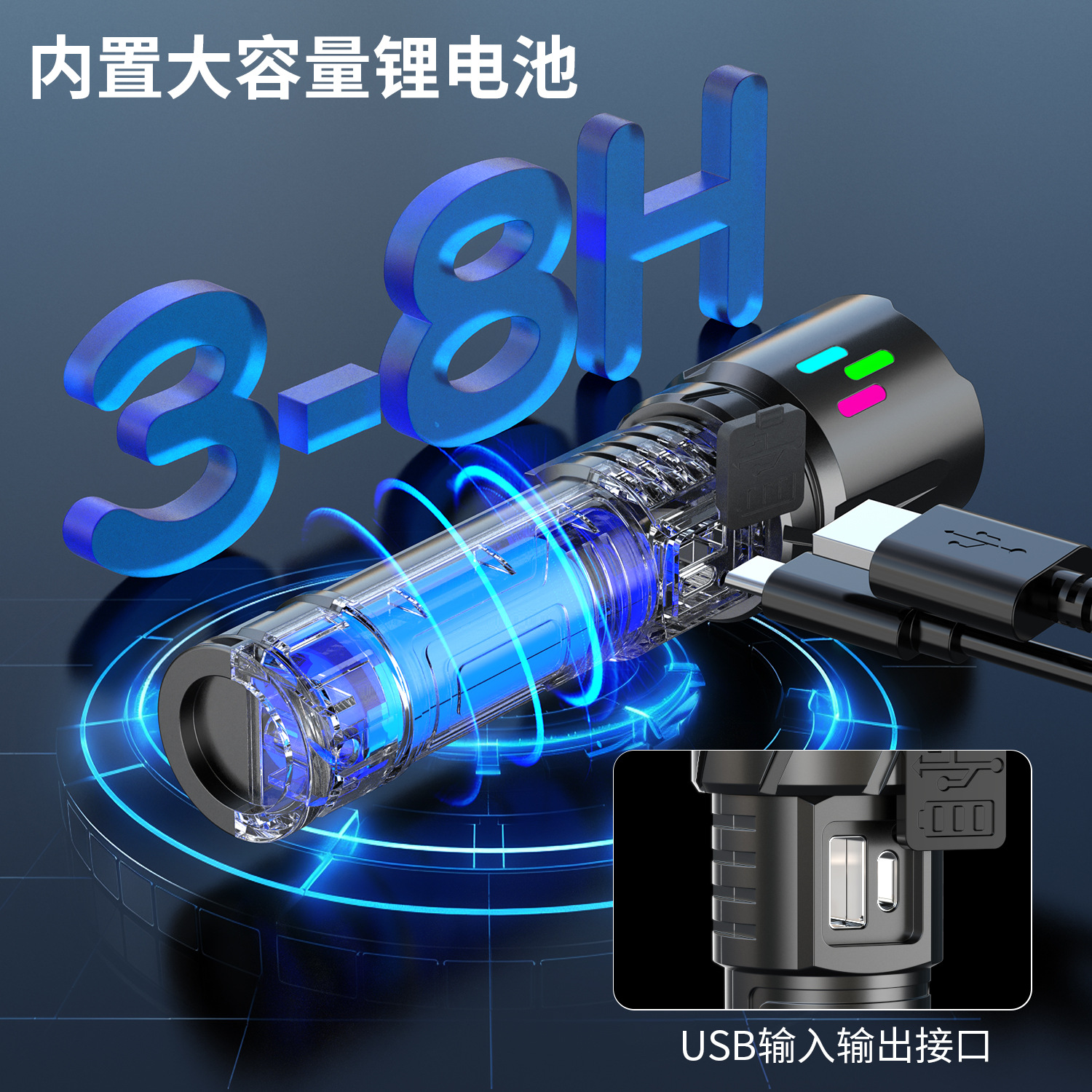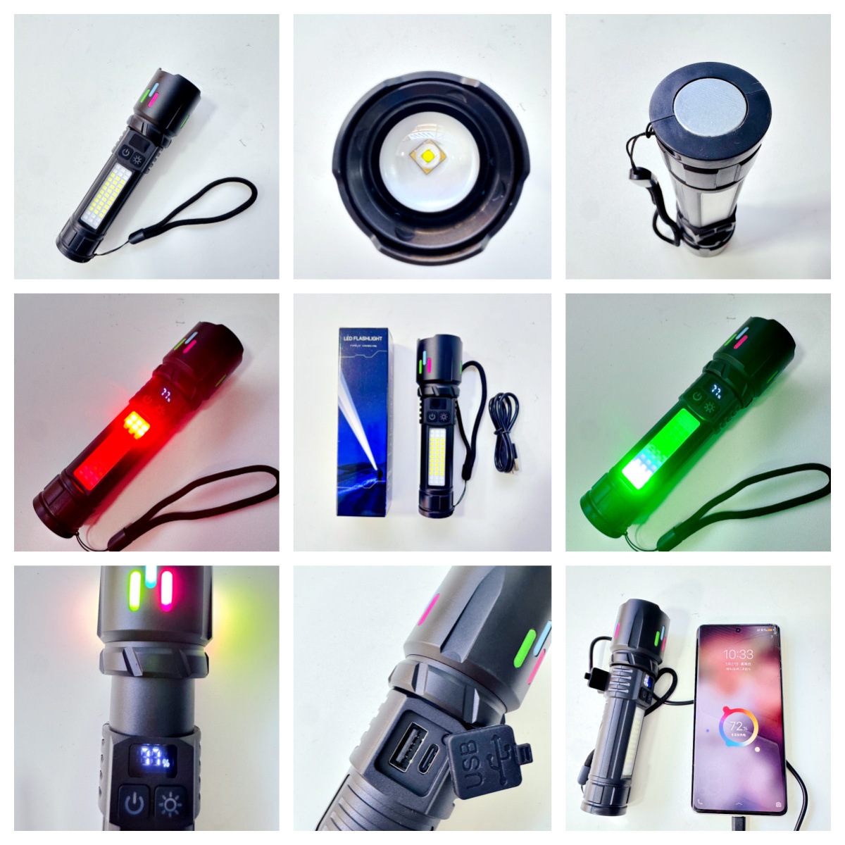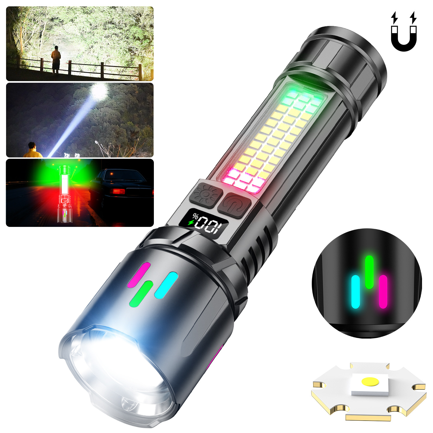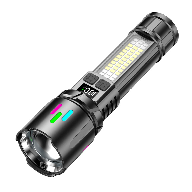 국경을 넘는 새로운 모델의 레이저 장거리 야외용 줌 디지털 디스플레이 COB 사이드 라이트 작업등, 후면 자석, 직접 충전식 손전등스토어 가기