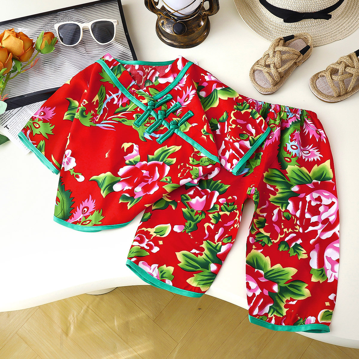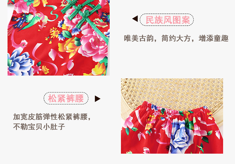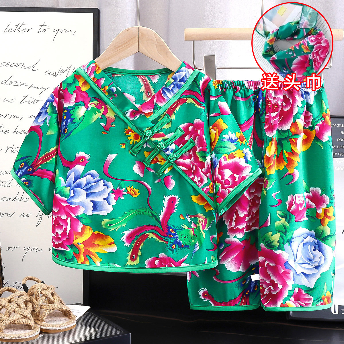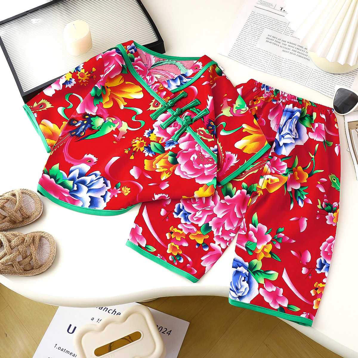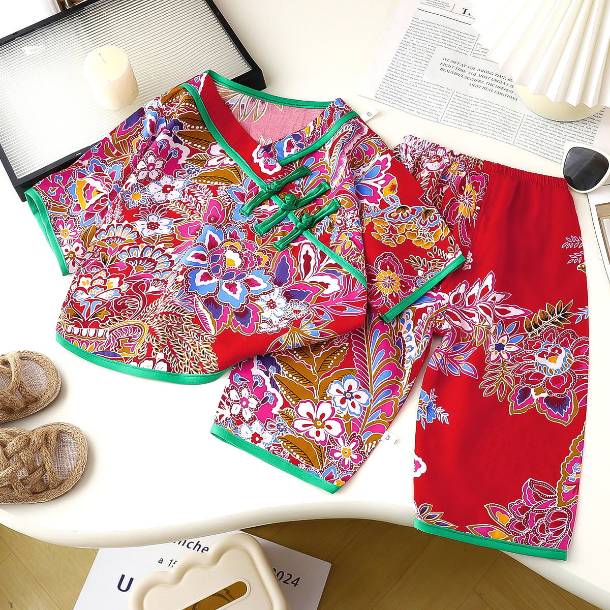 새로운 어린이 Guofeng 잠옷 세트 에어컨 의류 아기 소녀의 집 옷 면 실크 여름 얇은 투피스 세트