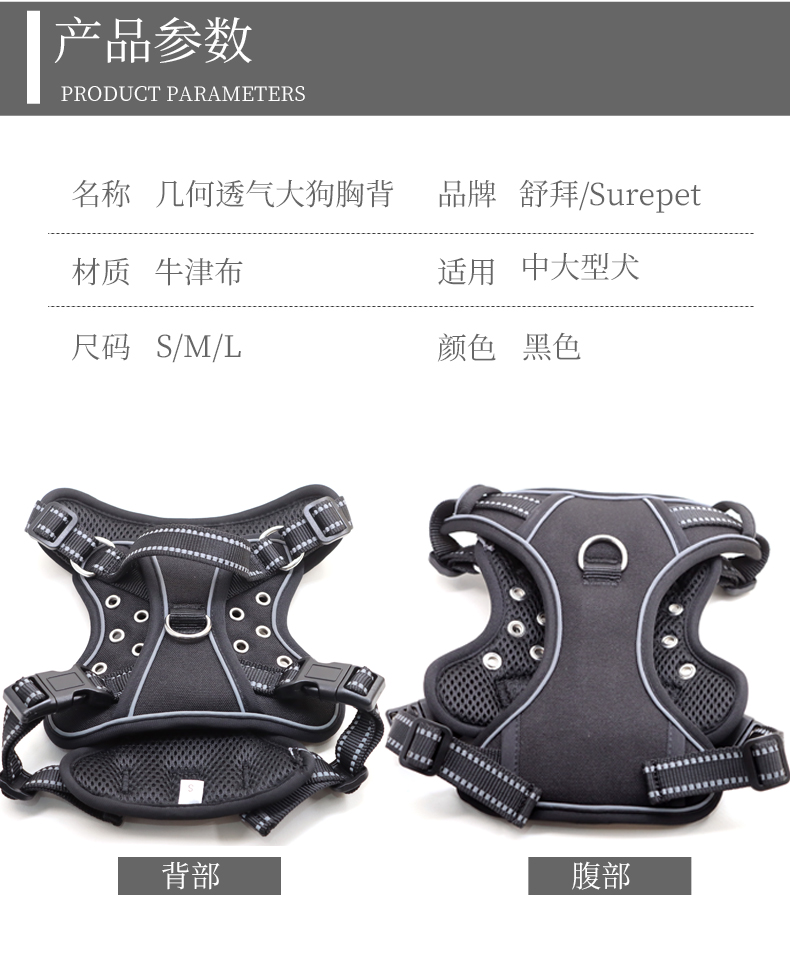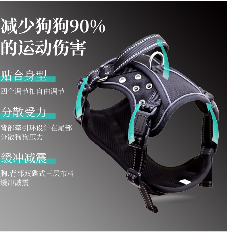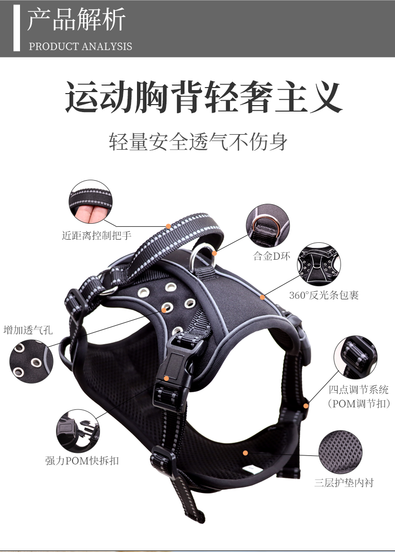 새로운 스타일의 중형 및 대형 개 야외 큰 개 가슴 스트랩 안티 브레이킹 트랙션 콘 전술 가슴 뒤스토어 가기