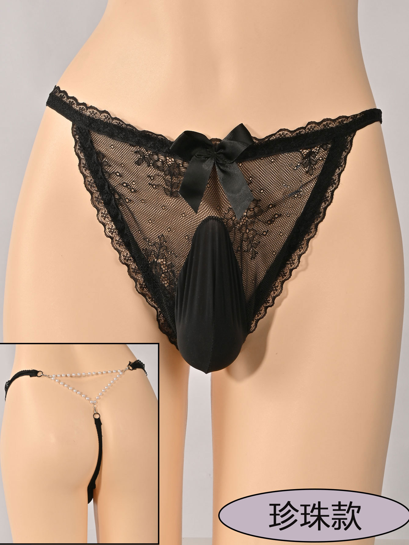 남성용 섹시한 G-스트링 투명 진주 작은 향기로운 스타일 유혹 나이트 클럽 트렌디 남성용 스트레치 브리프 장난감 레이스 JK