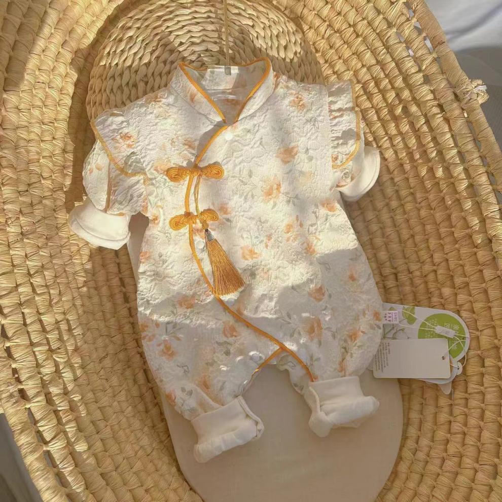 [5994 명 컬렉션] 아기 점프 수트 봄과 가을 여름 얇은 면화 퀼트 카이 아기 소녀 신생아 옷