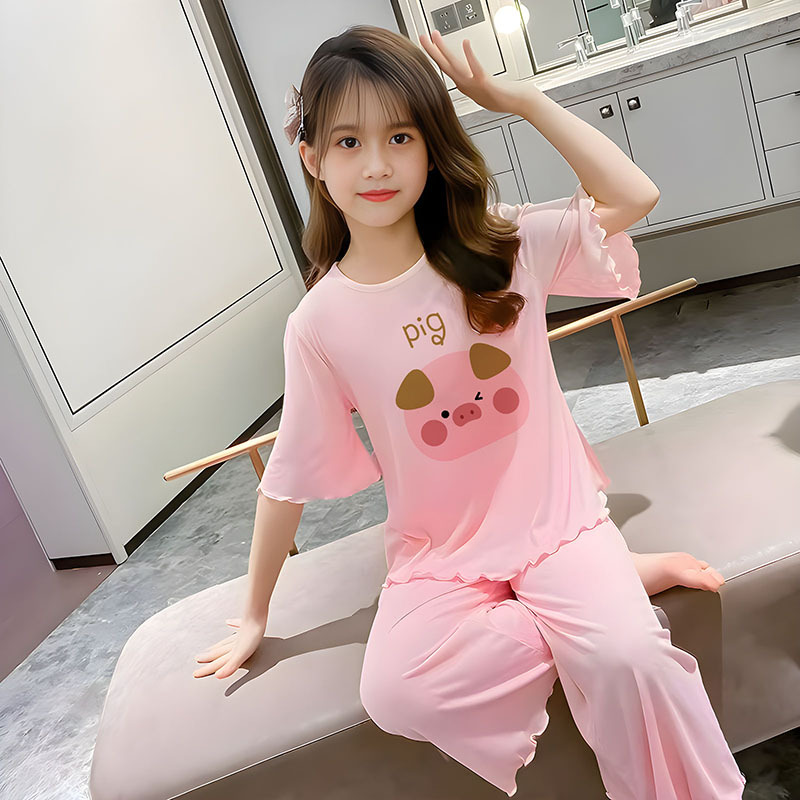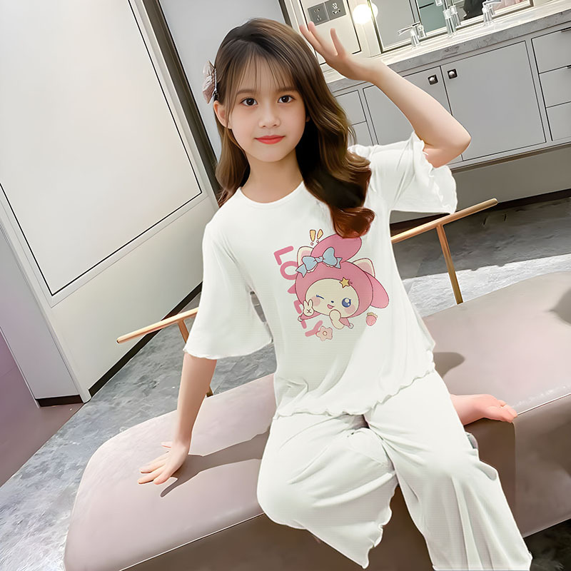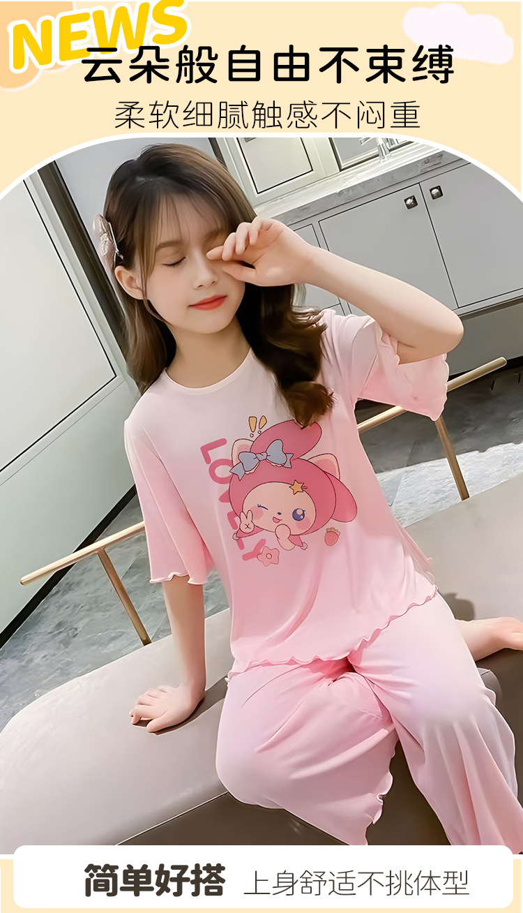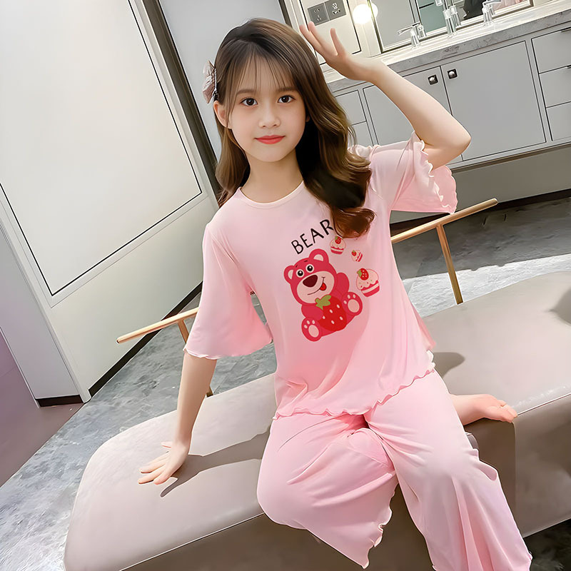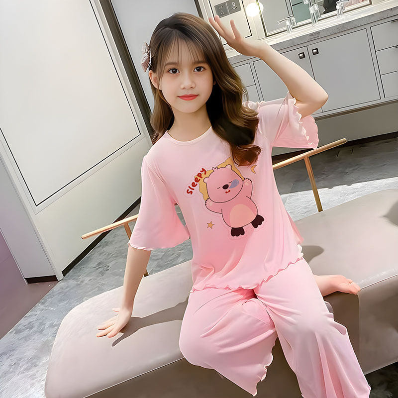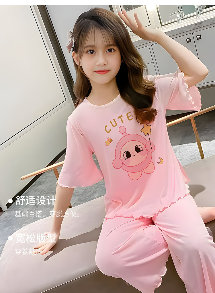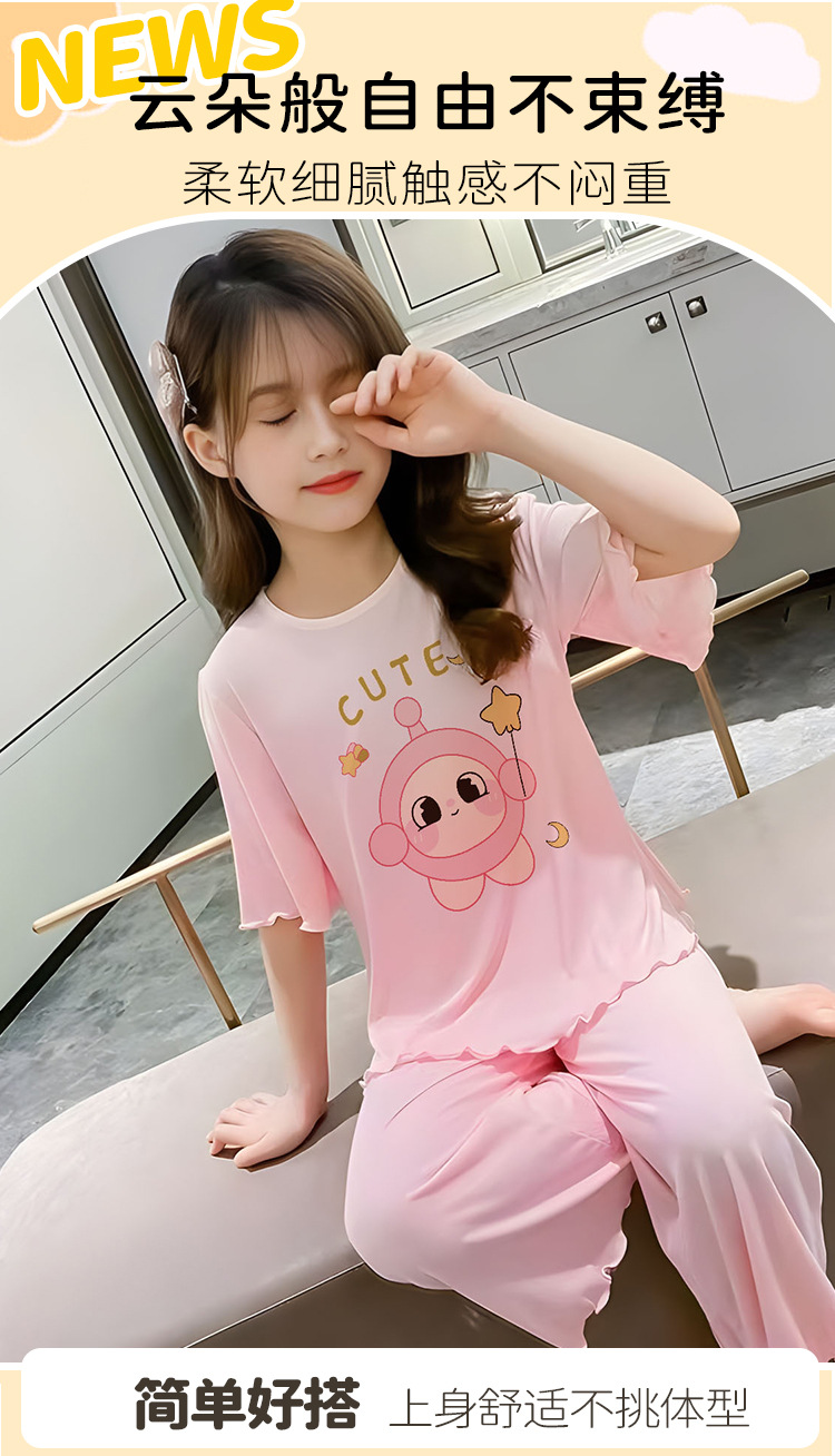 소녀 잠옷 여름 어린이 반팔 얇은 세트 2025 새로운 스타일 소녀 공주 중 큰 어린이 에어컨 홈 옷스토어 가기