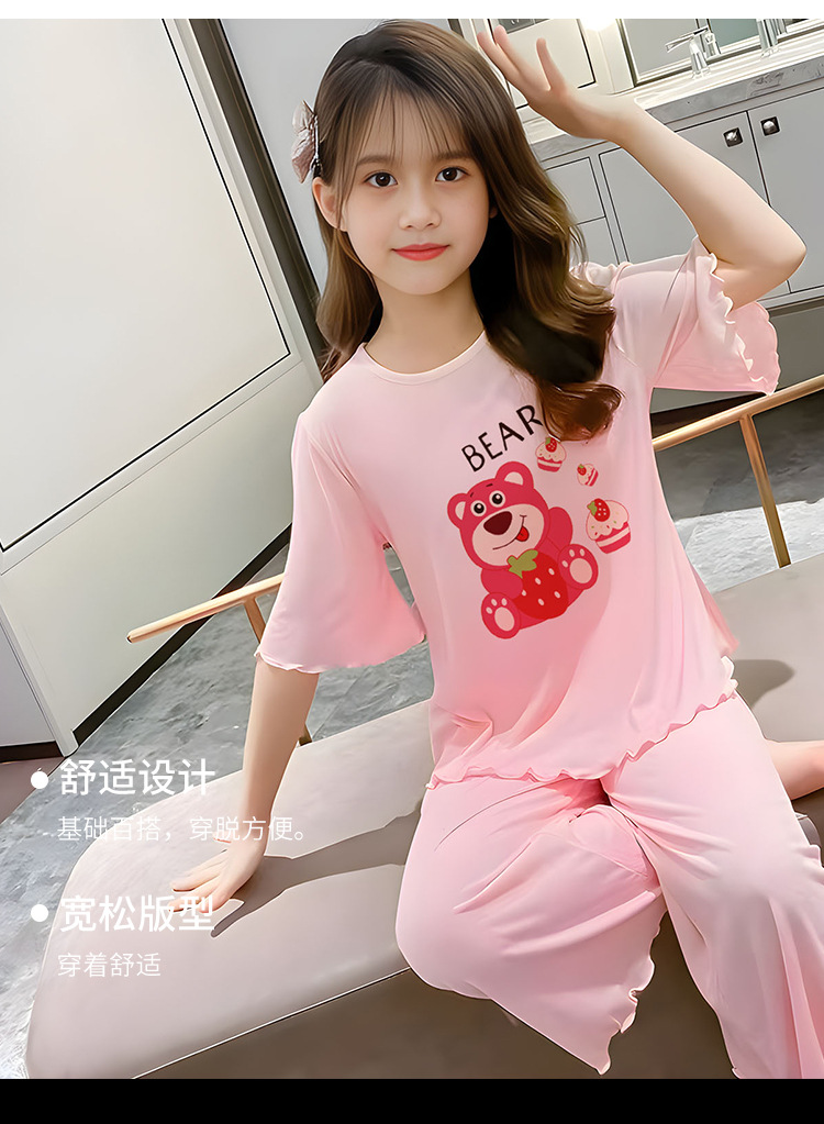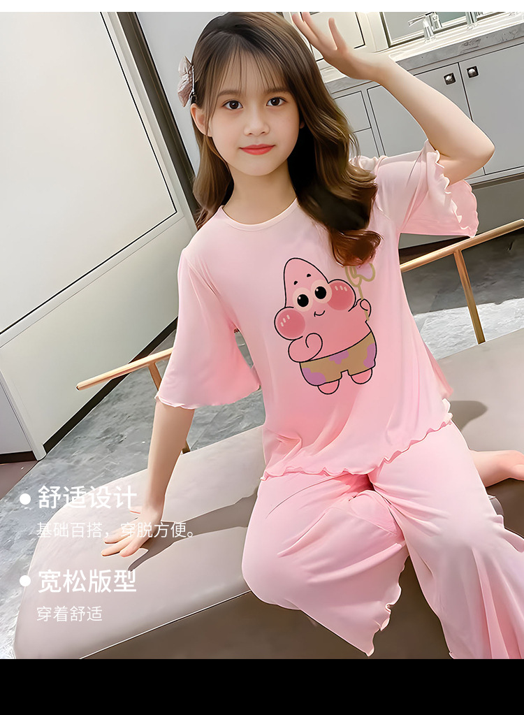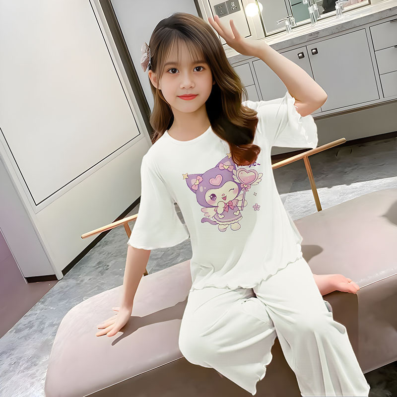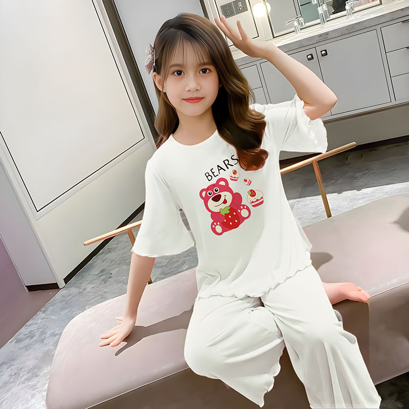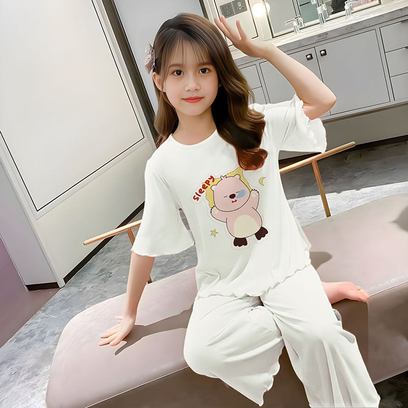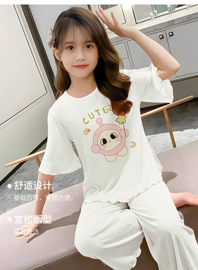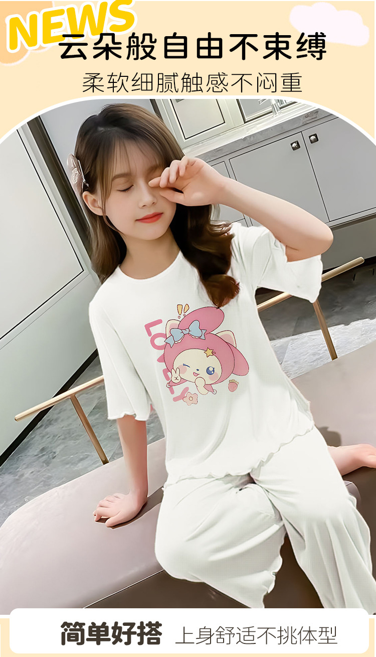 소녀 잠옷 여름 어린이 반팔 얇은 세트 2025 새로운 스타일 소녀 공주 중 큰 어린이 에어컨 홈 옷스토어 가기