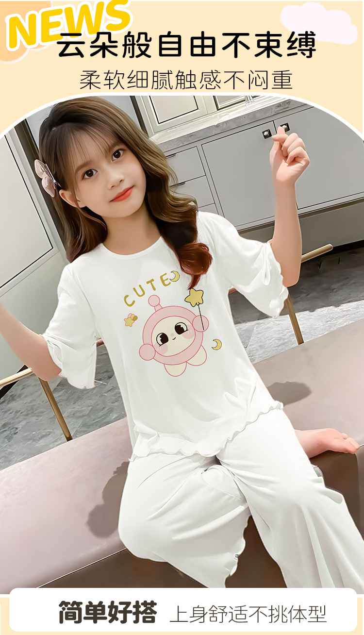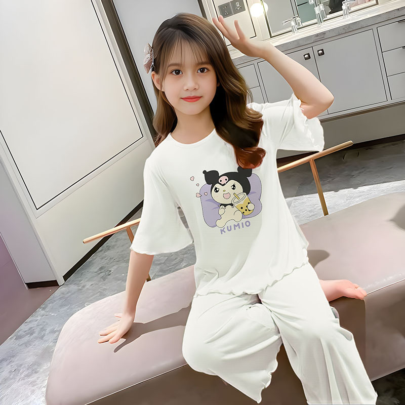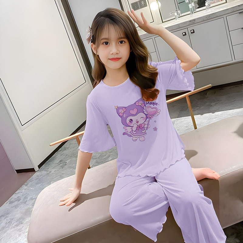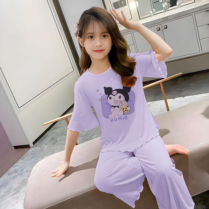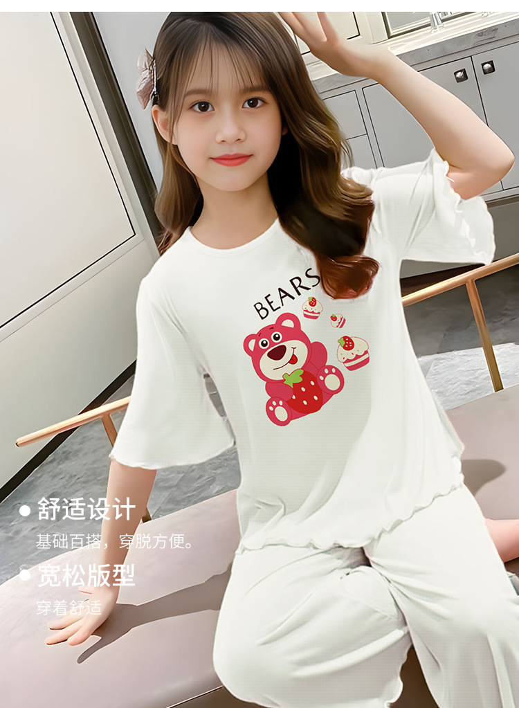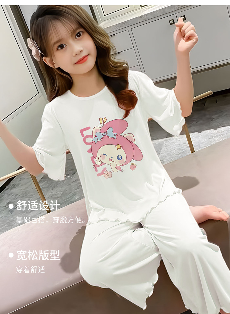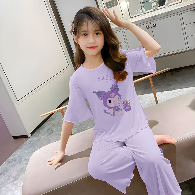 소녀 잠옷 여름 어린이 반팔 얇은 세트 2025 새로운 스타일 소녀 공주 중 큰 어린이 에어컨 홈 옷스토어 가기
