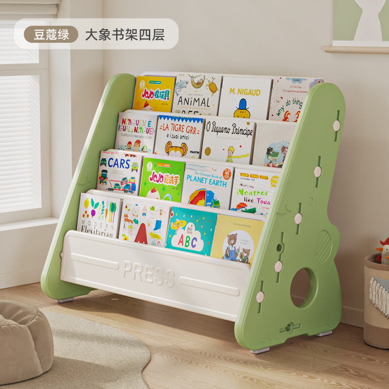 • 코끼리로 보강하고 두꺼워진 4단 책장 [녹색]
