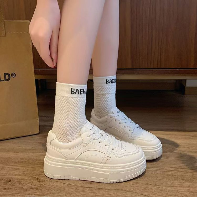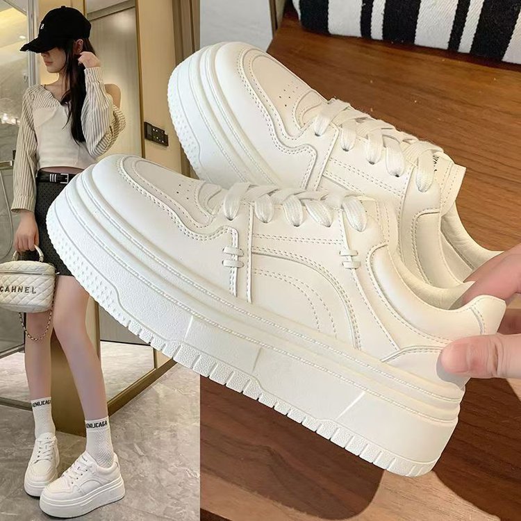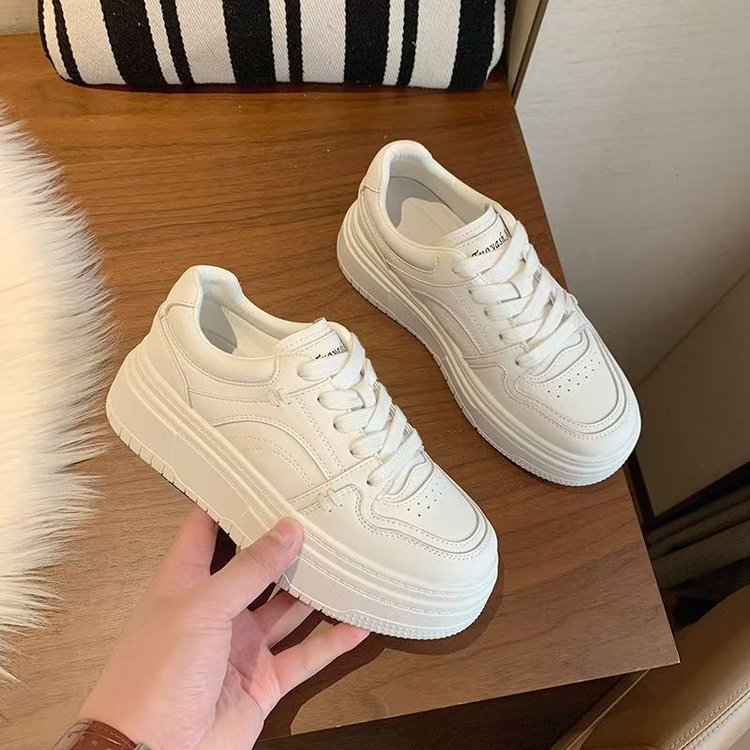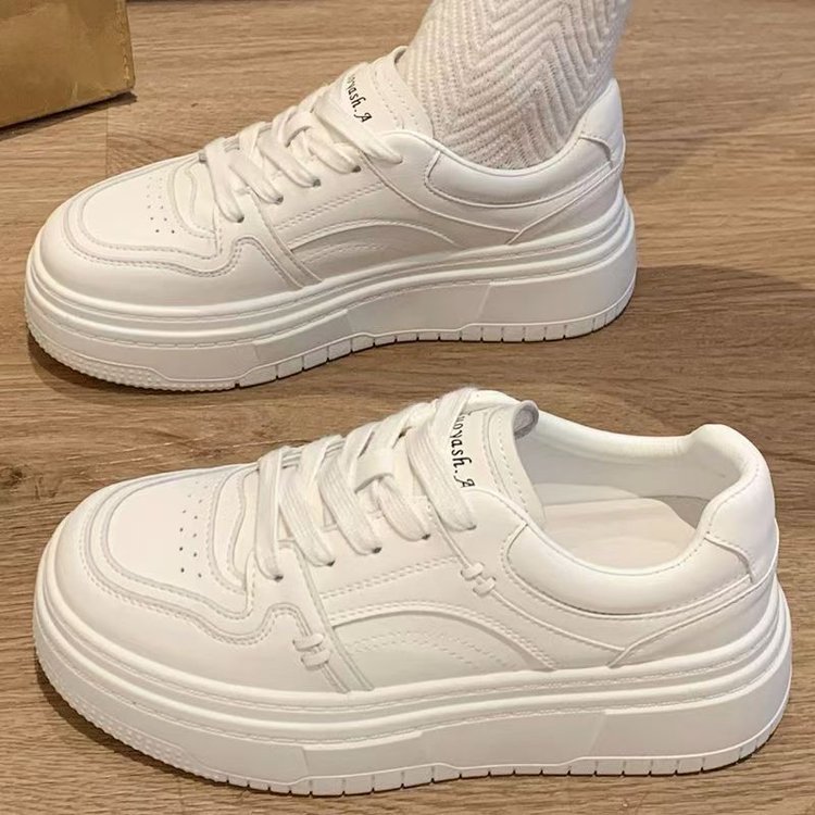 대외 무역 화이트 신발 여성 2025 봄 새로운 올 매치 레이스 업 특허 가죽 캐주얼 신발 스포츠 플랫폼 스니커즈 여성 신발스토어 가기