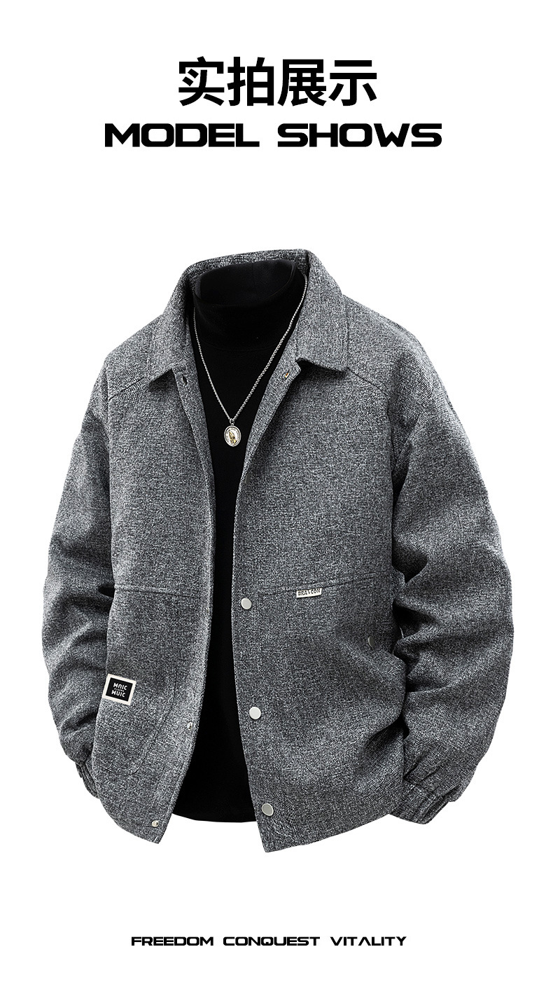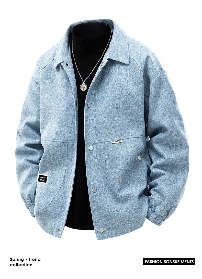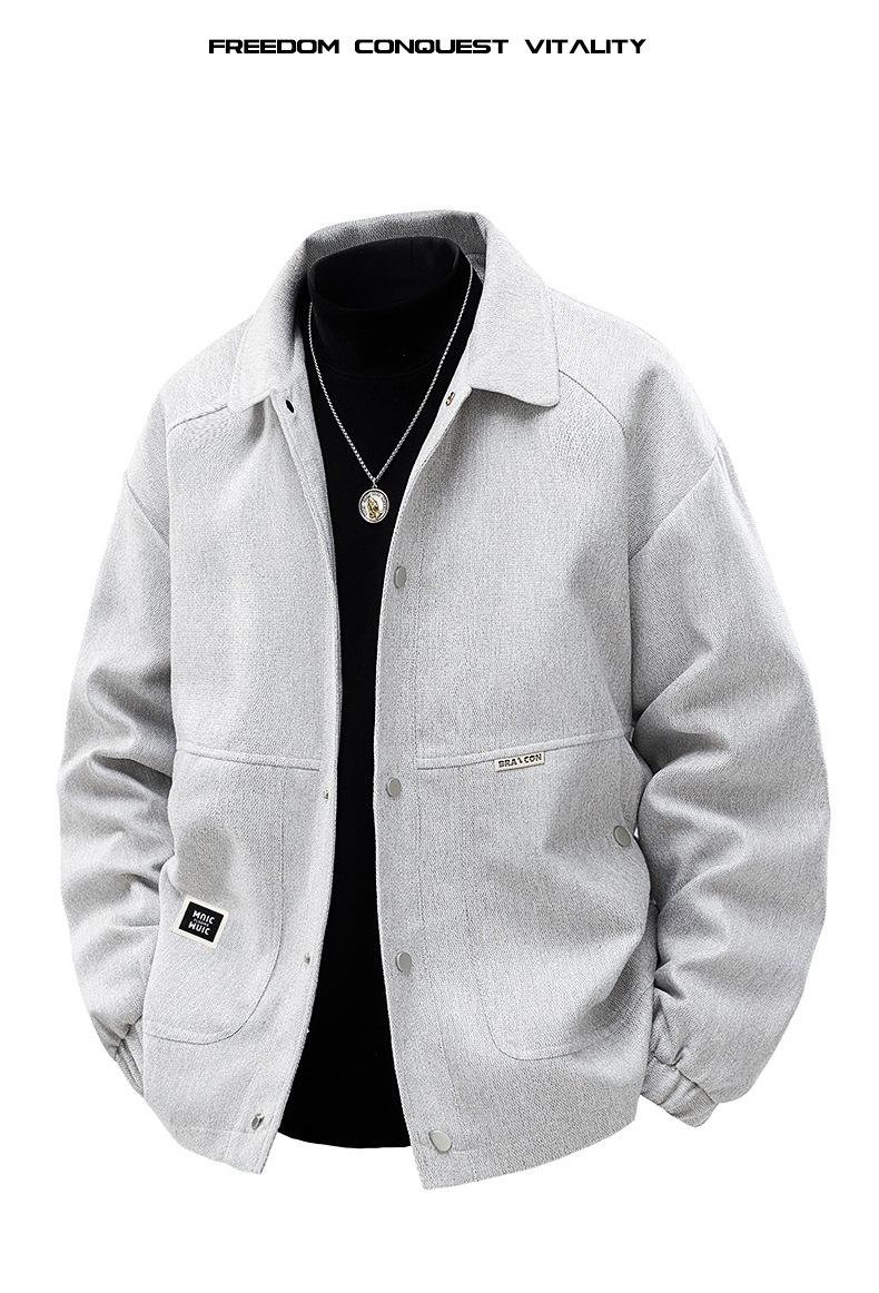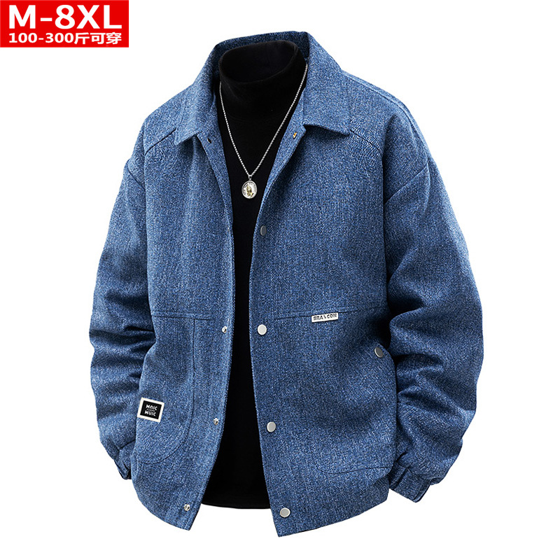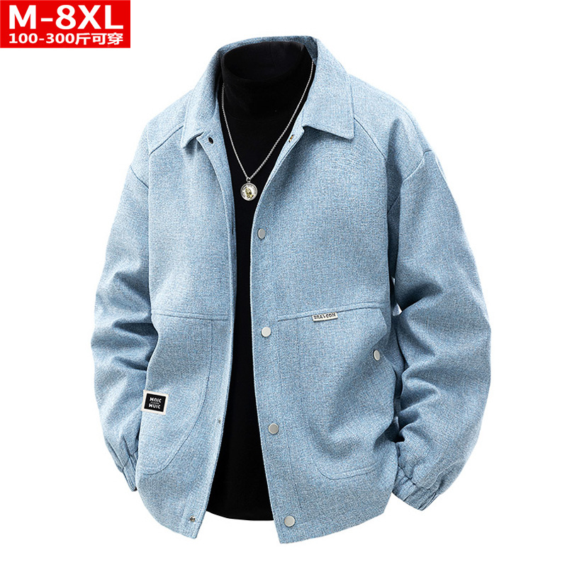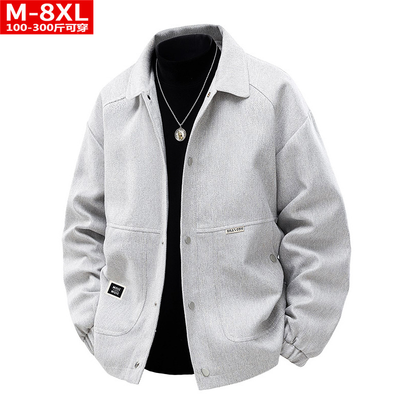 봄과 가을 트렌디 한 홍콩 스타일 남성 패션 심플 스퀘어 칼라 자켓 지방 남성 플러스 사이즈 느슨한 캐주얼 자켓스토어 가기
