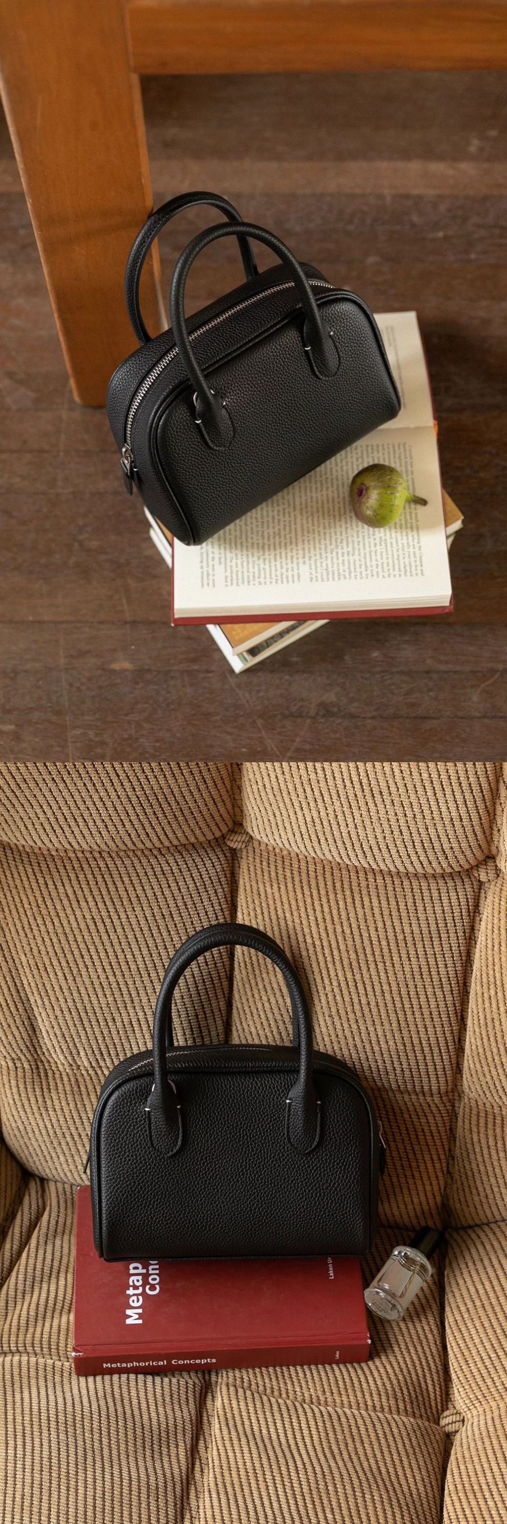 빈티지 Lychee 패턴 휴대용 보스턴 가방 여자 2025 새로운 통근 올 매치 어깨 베개 볼링 백