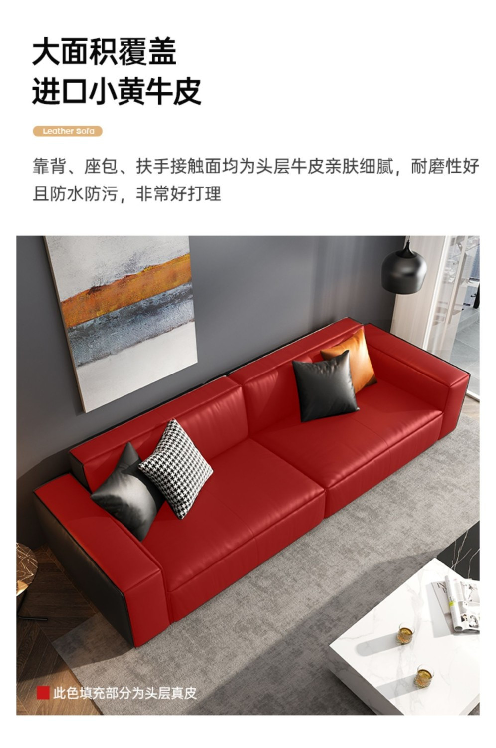 이탈리아 스타일 미니멀리스트 가죽 소파 탑 레이어 Cowhide 현대 간단한 거실 원 피트 두부 블록 가죽 소파 작은 아파트