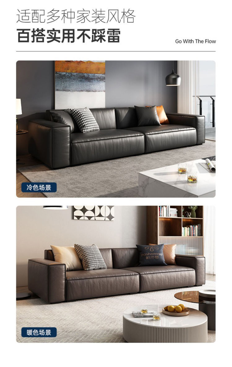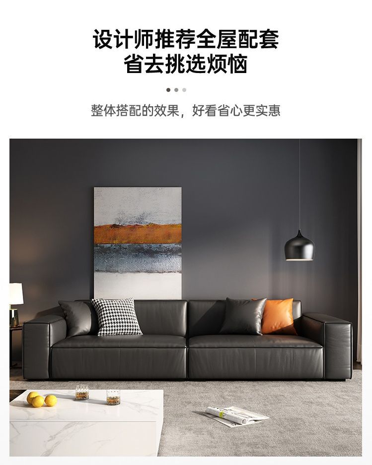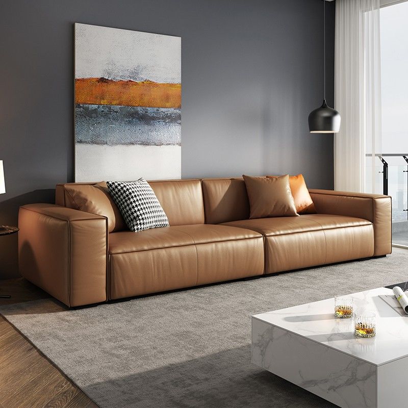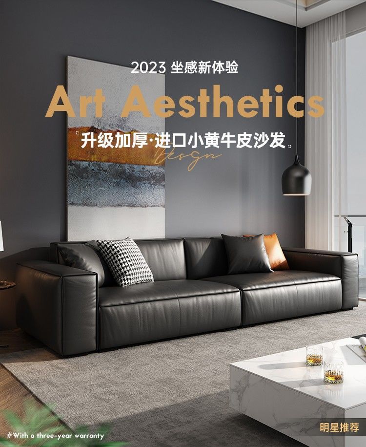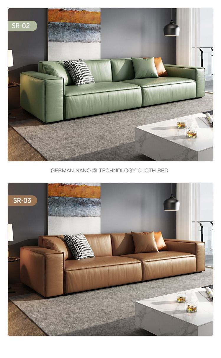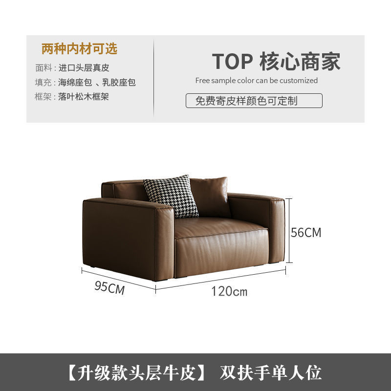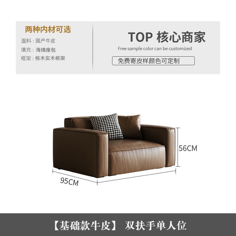 이탈리아 스타일 미니멀리스트 가죽 소파 탑 레이어 Cowhide 현대 간단한 거실 원 피트 두부 블록 가죽 소파 작은 아파트스토어 가기