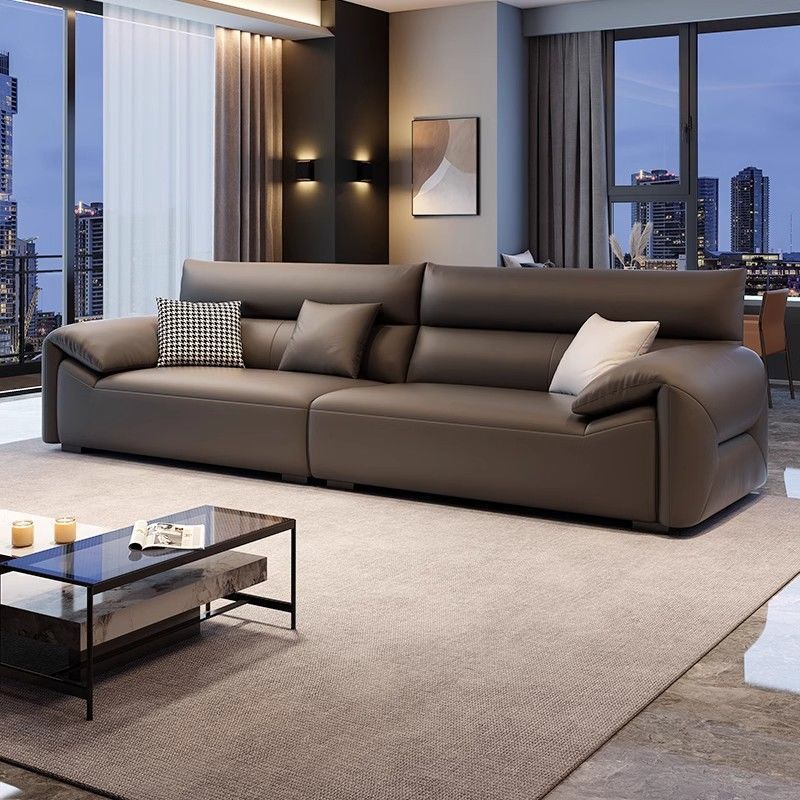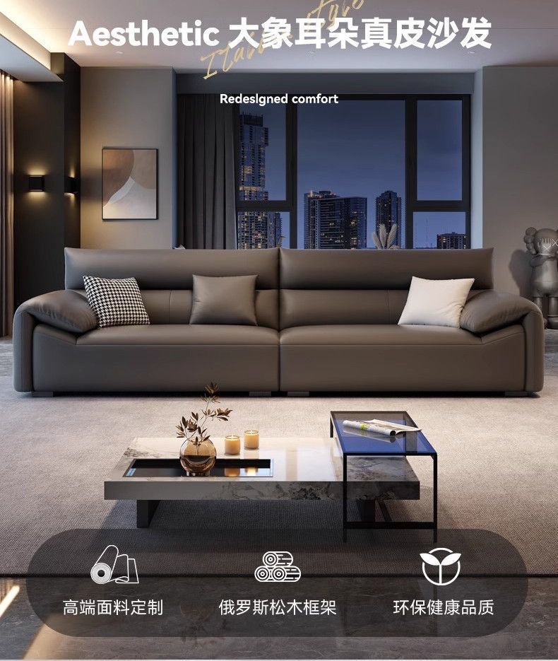 현대 간단한 이탈리아 빛 럭셔리 가죽 소파 미니멀리스트 거실 새로운 중소 아파트 코끼리 귀 가죽 소파