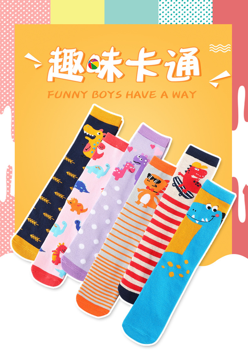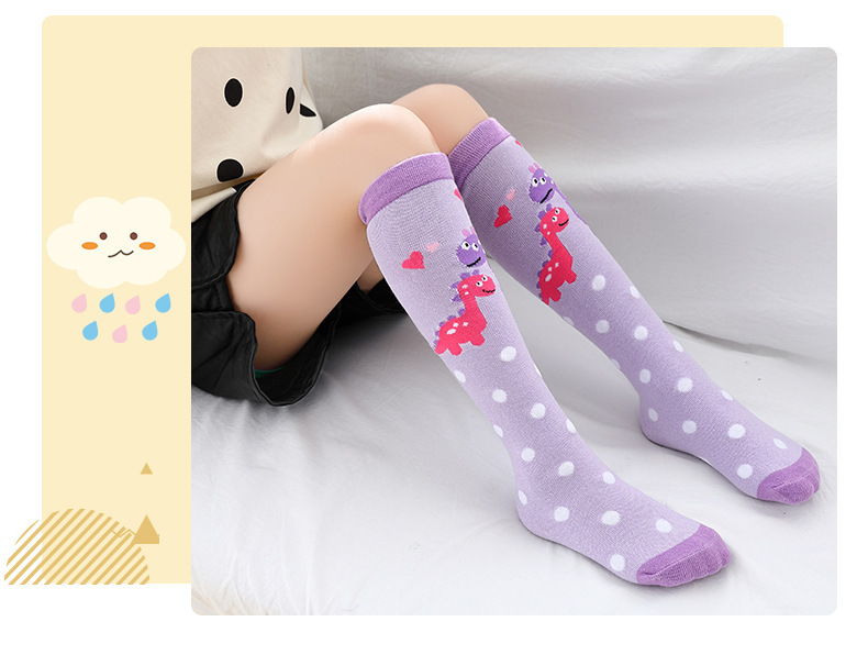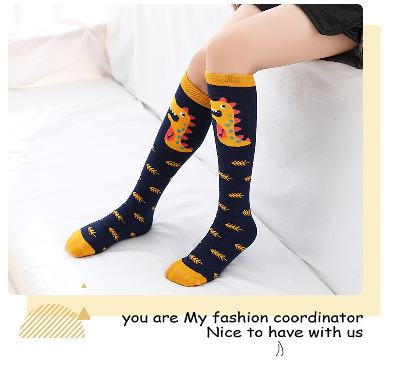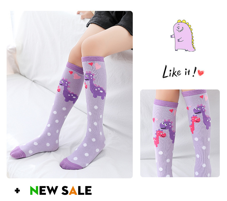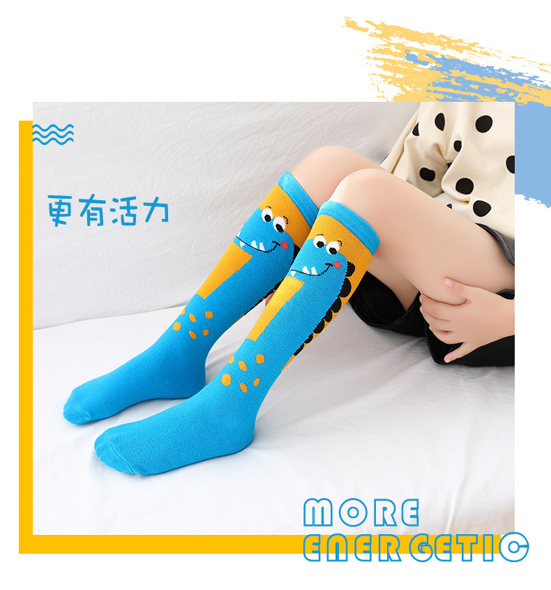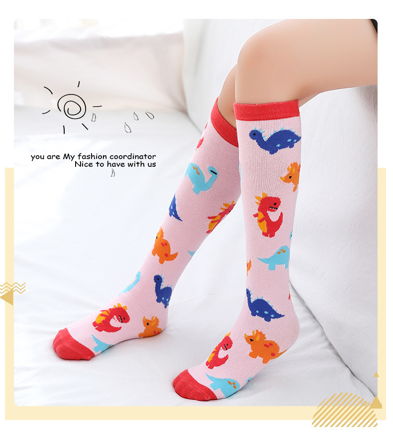 새로운 유행 공룡 만화 어린이 양말 중간 튜브 양말 스트레이트 비 힐 오버 무릎 스타킹 어린이 양말스토어 가기