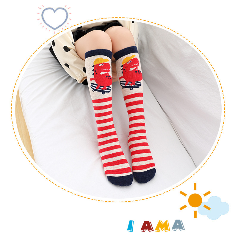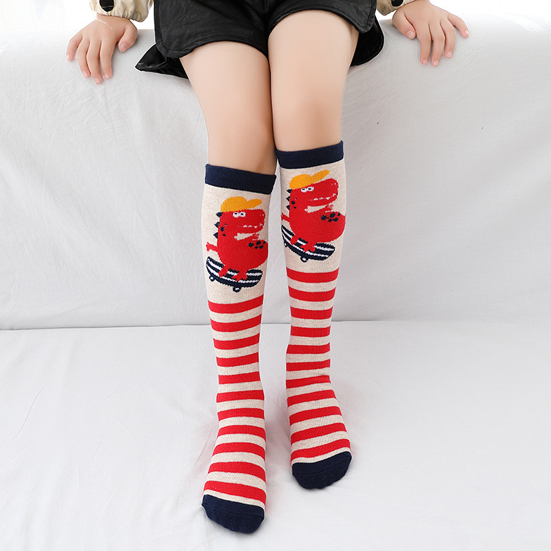 새로운 유행 공룡 만화 어린이 양말 중간 튜브 양말 스트레이트 비 힐 오버 무릎 스타킹 어린이 양말