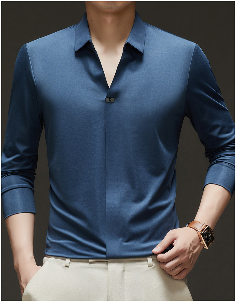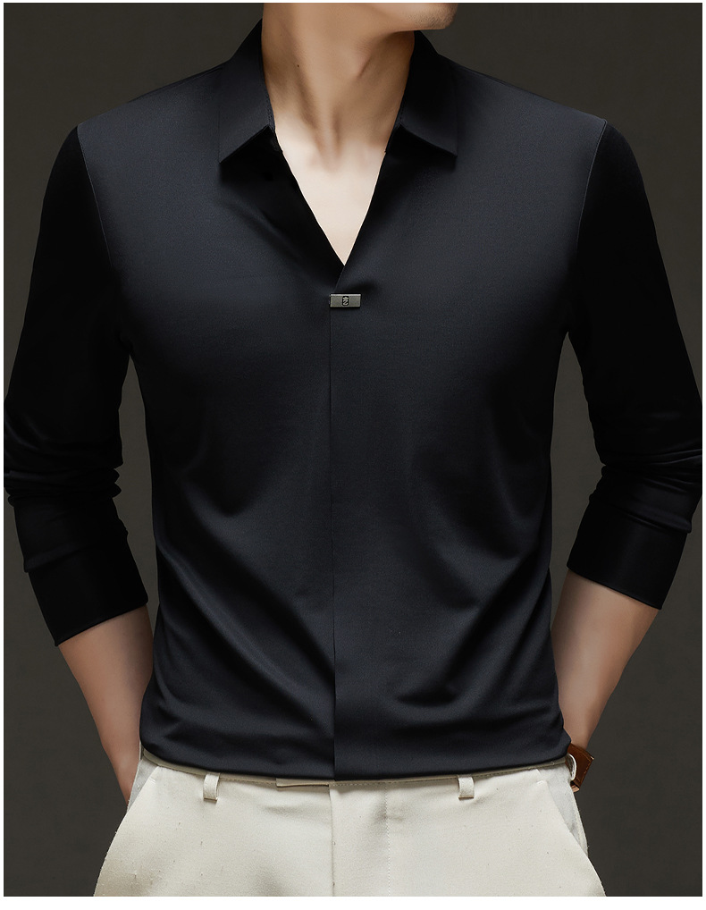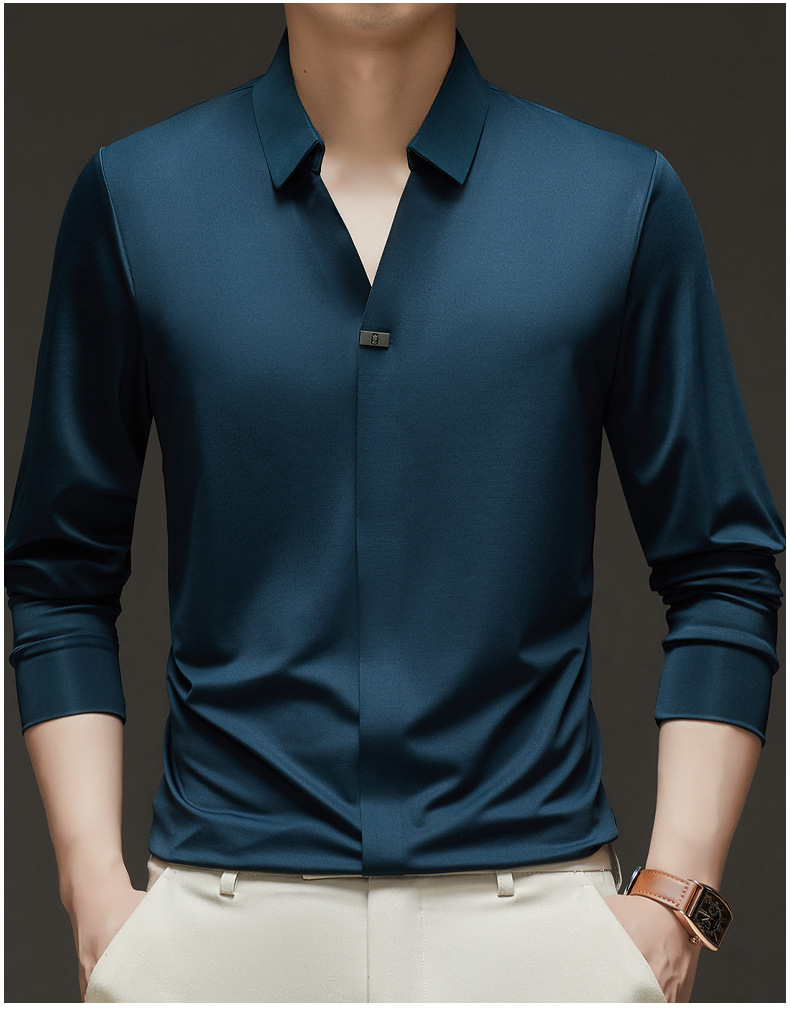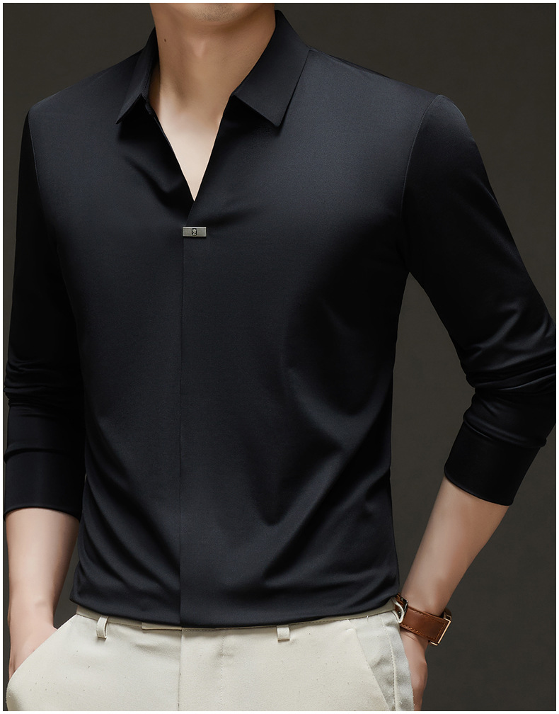대외 무역 사업 캐주얼 긴 소매 셔츠 남성 봄 새로운 바닥 2025 원활한 내부 폴로 셔츠