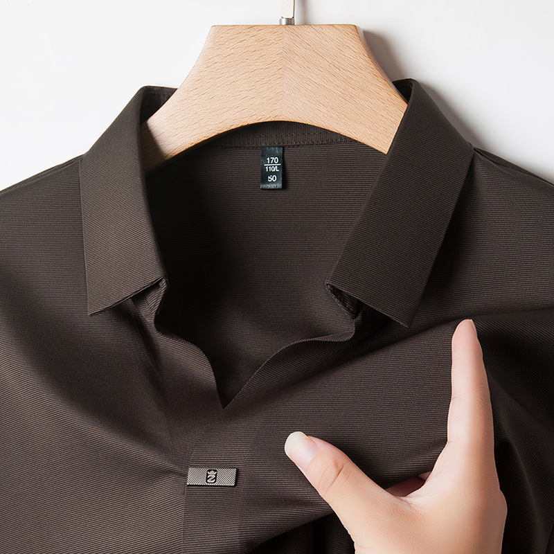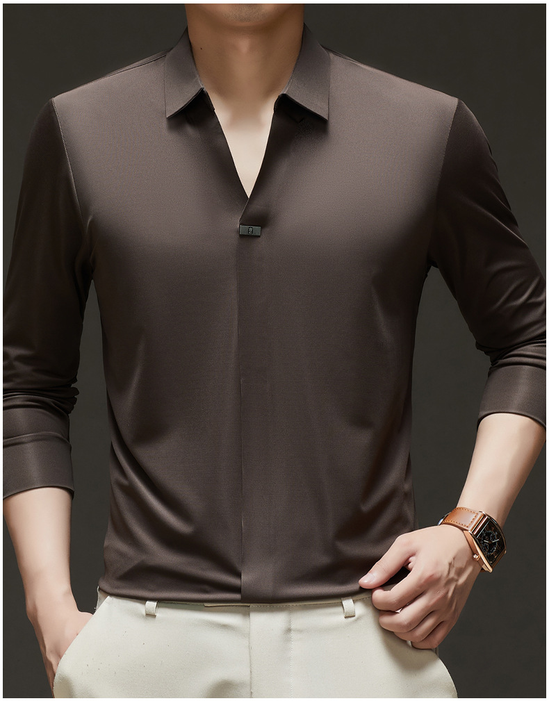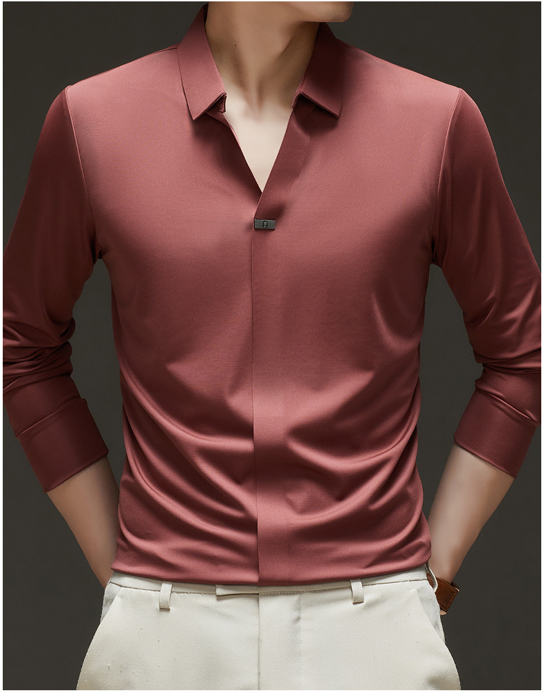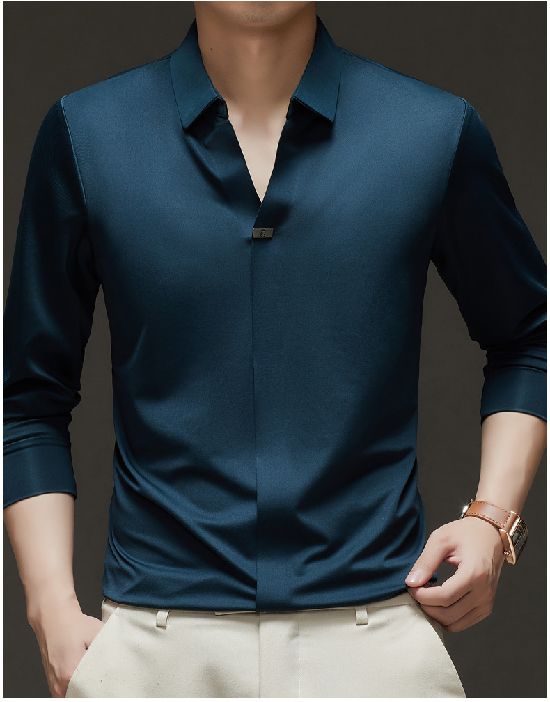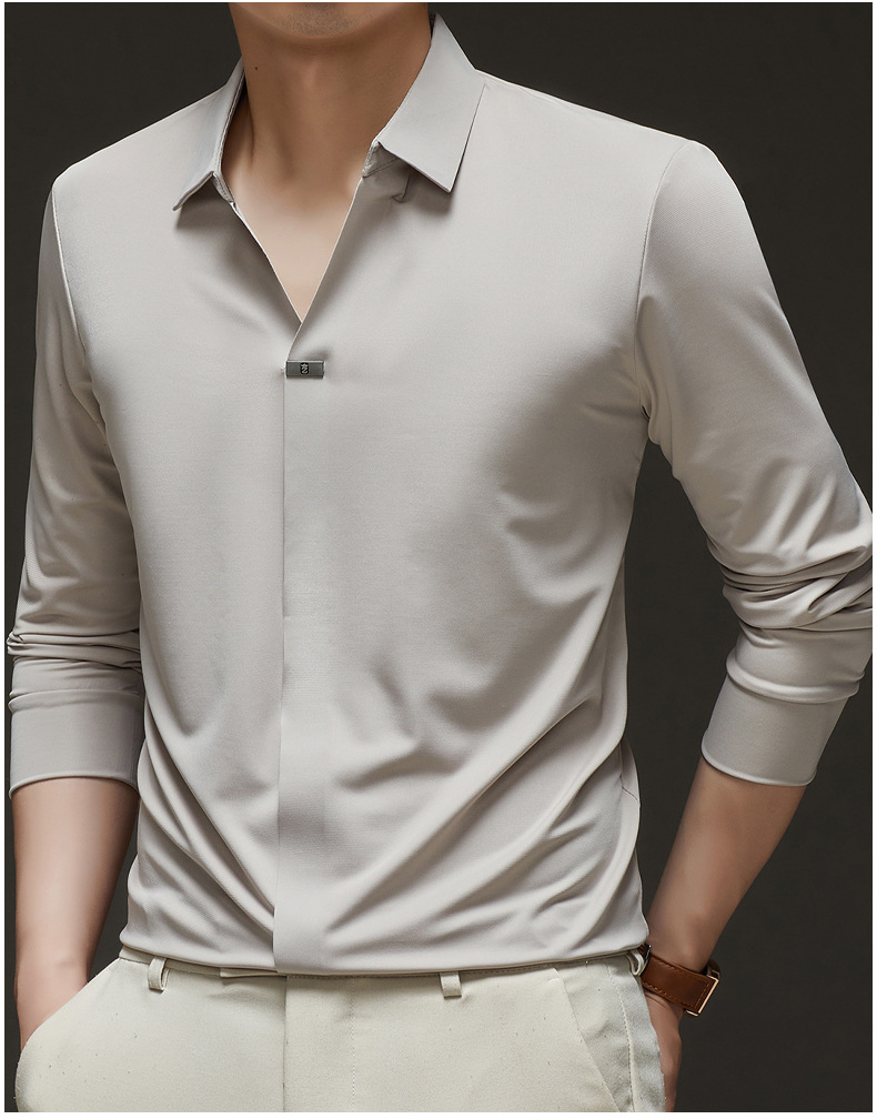 대외 무역 사업 캐주얼 긴 소매 셔츠 남성 봄 새로운 바닥 2025 원활한 내부 폴로 셔츠