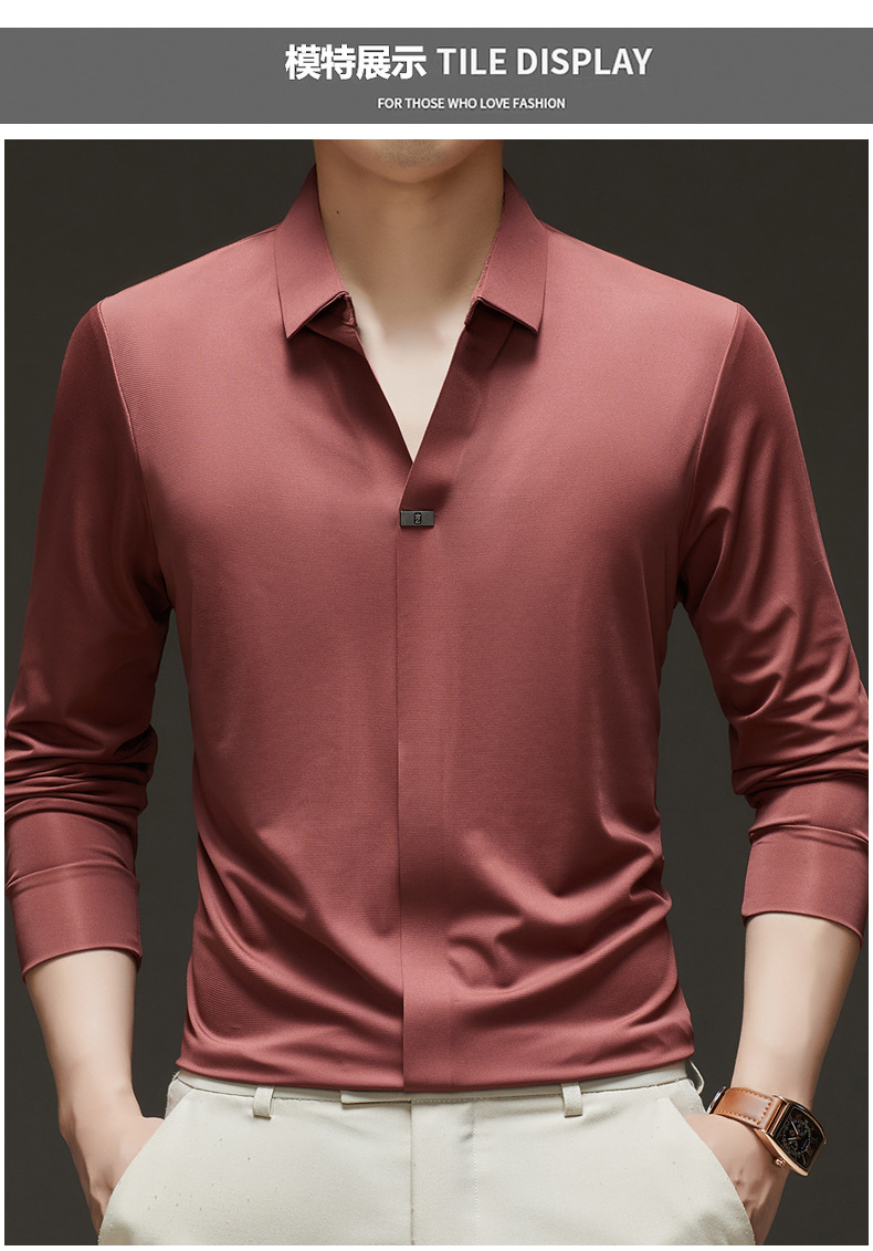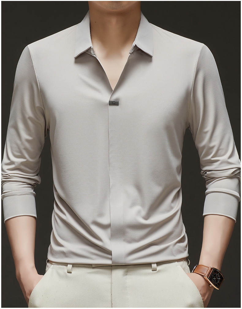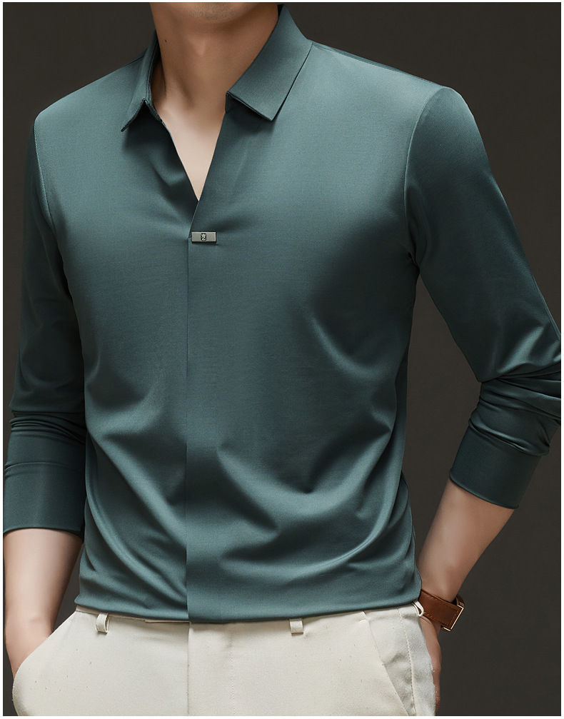 대외 무역 사업 캐주얼 긴 소매 셔츠 남성 봄 새로운 바닥 2025 원활한 내부 폴로 셔츠스토어 가기