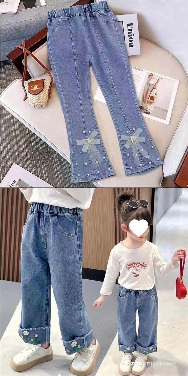 여아 나팔바지 2025 봄 가을 새로운 스타일 유행 청바지 서양식 아동용 신축성 있는 슬림 팬츠 유행스토어 가기