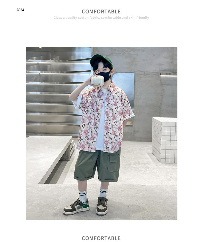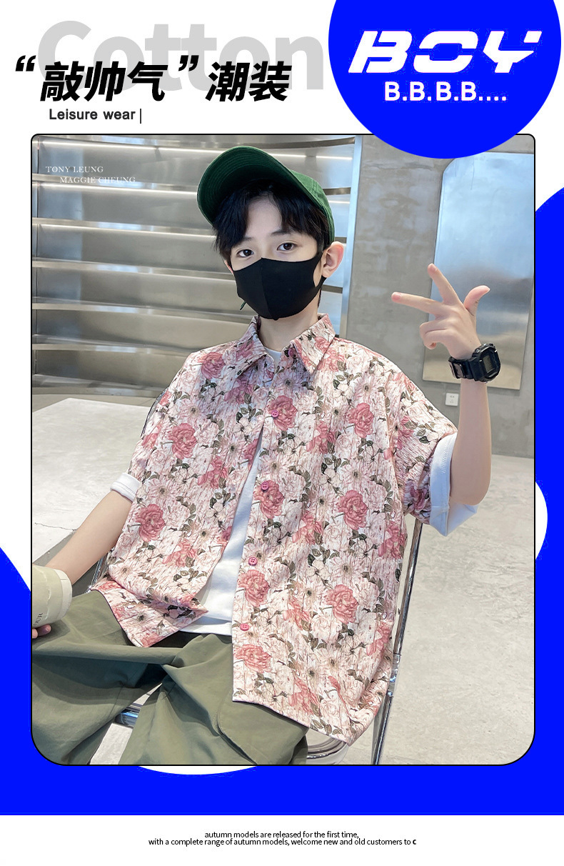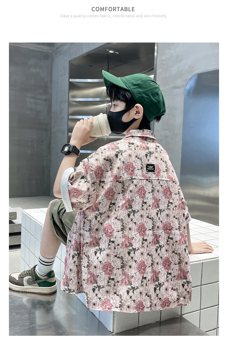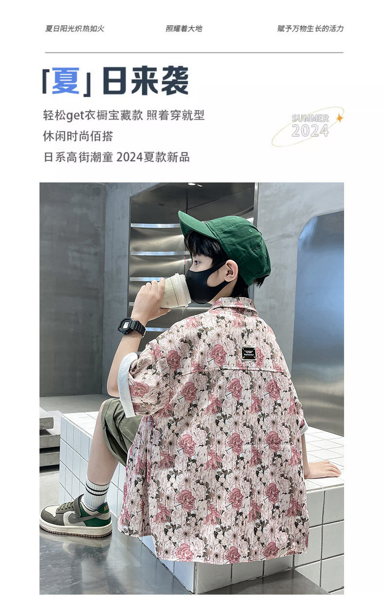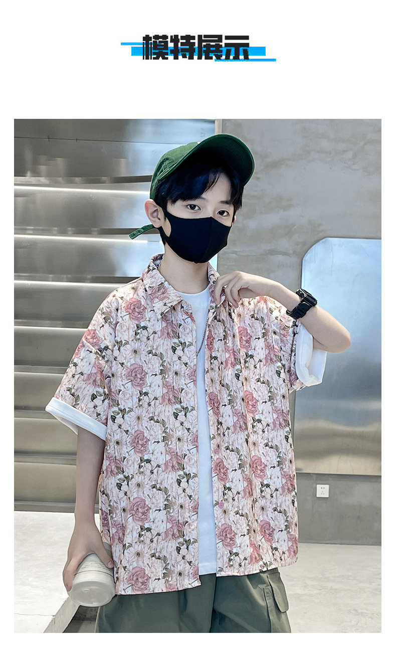 어린이 반팔 셔츠 소년 여름 얇은 2025 새로운 도착 트렌디 시원하고 잘 생긴 꽃 셔츠 여름스토어 가기