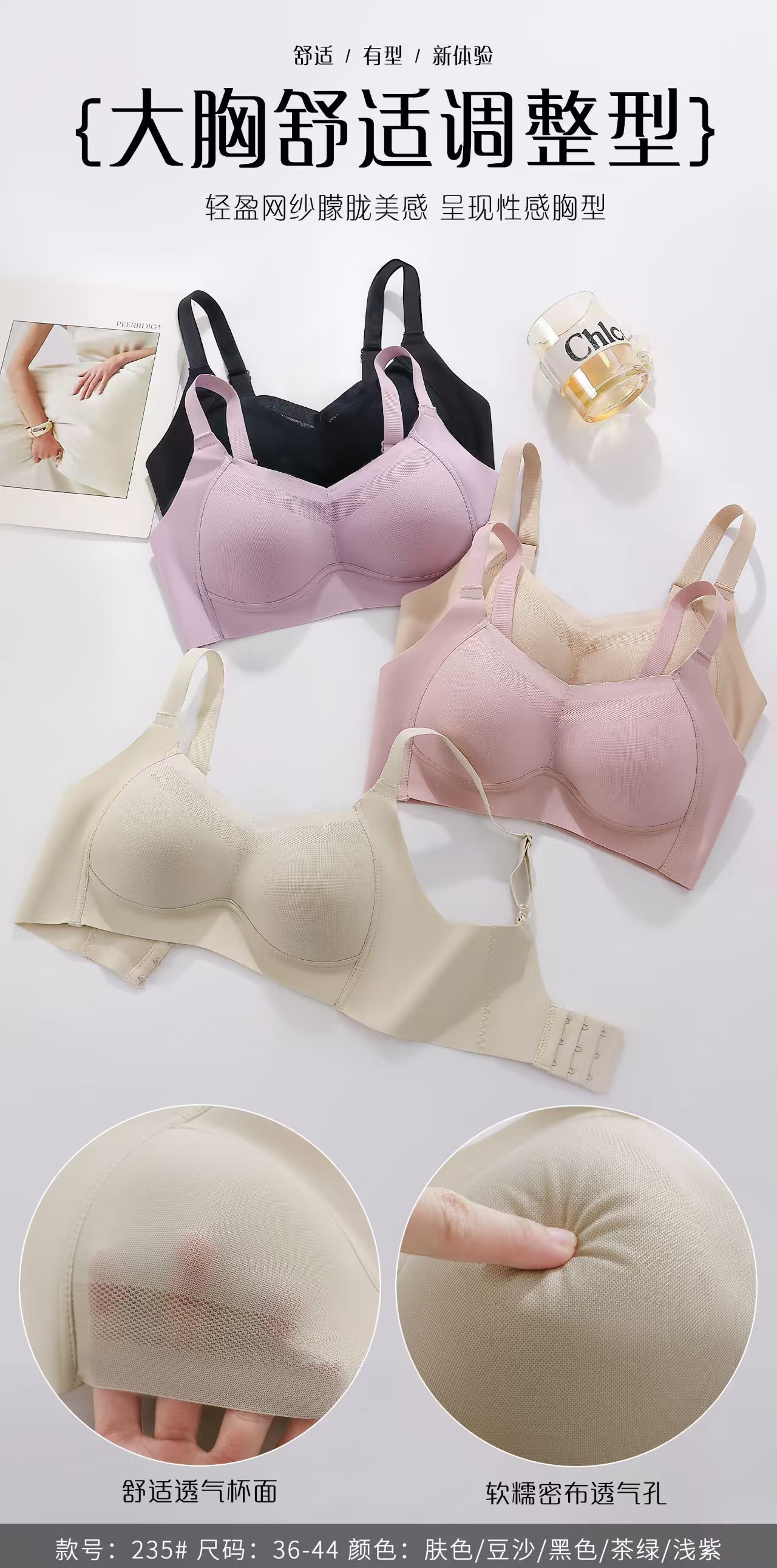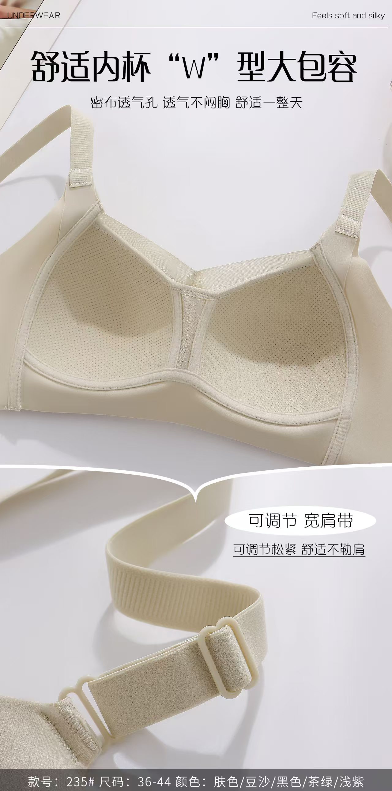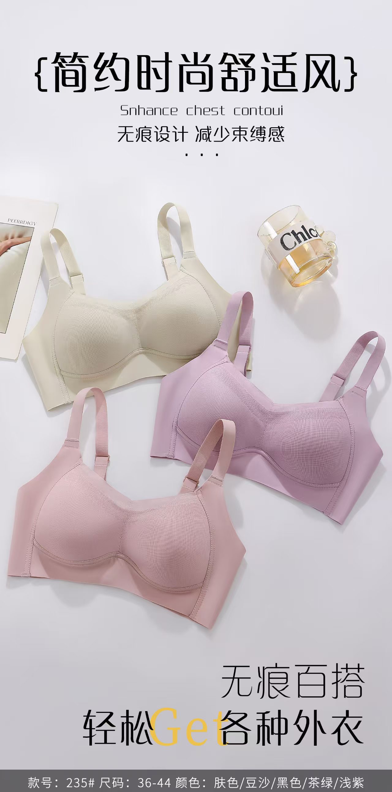 Pretty 235 사이드 본 Tracless Anti-running Traceless Underwear Rimless Thin Bra 편안한 소프트 조정 가능