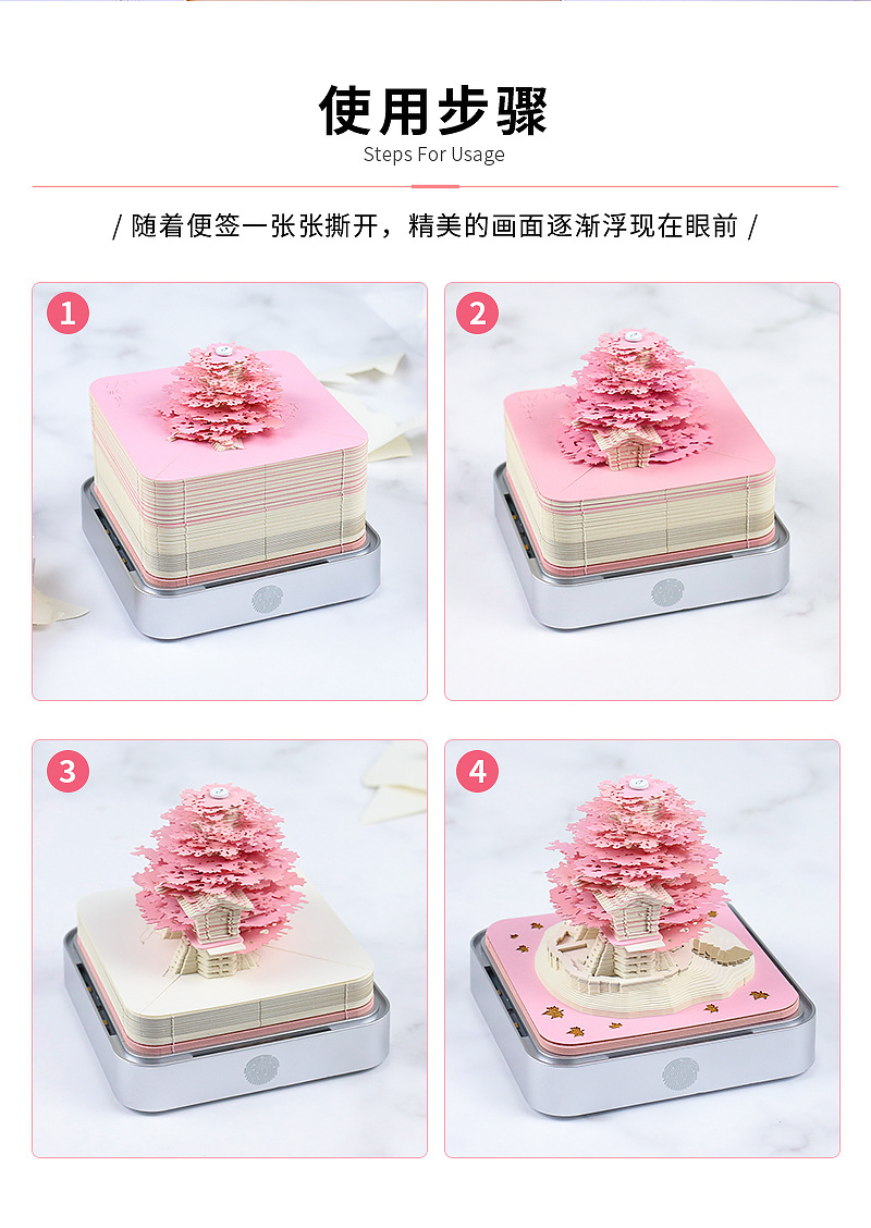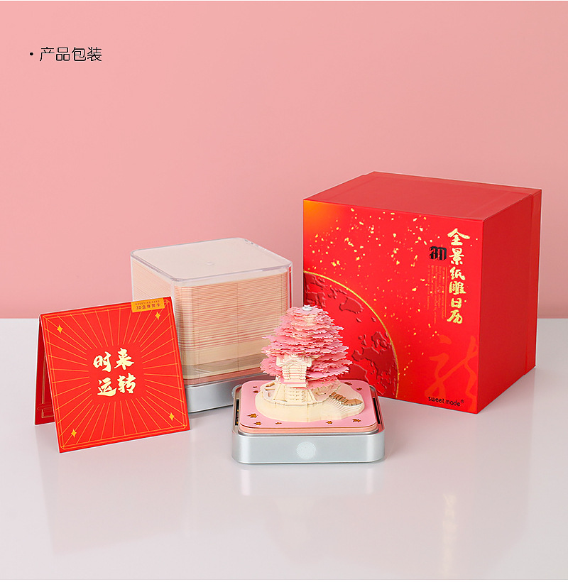 ✅핑크 로맨틱 트리 하우스 파노라마 3D 스테레오 노트 라이트 크리에이티브 선물 맞춤형 2025 달력 데스크탑 진자