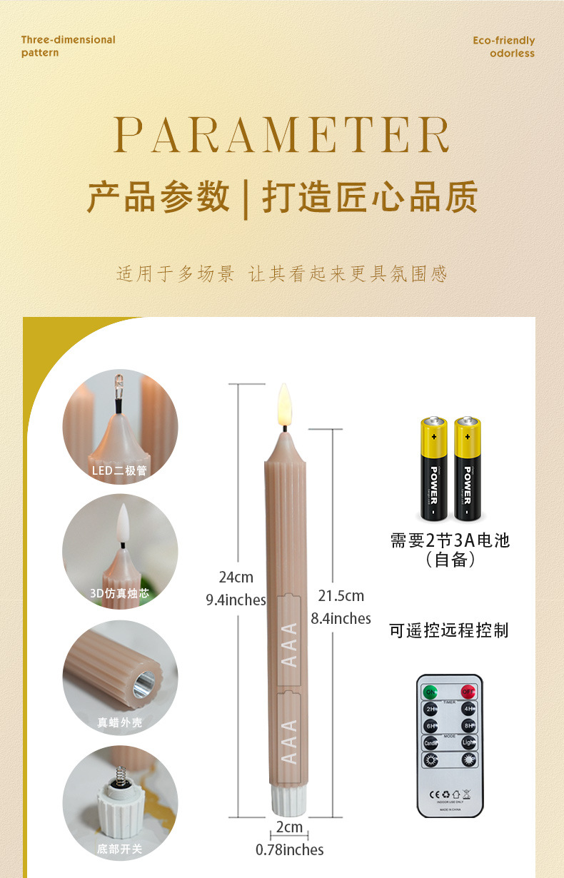 ✅모란 디 컬러 시리즈 막대 왁스 파라핀 왁스 LED 전자 촛불 빛 크리스마스 웨딩 장식 촛불 긴로드 왁스 전기 극스토어 가기