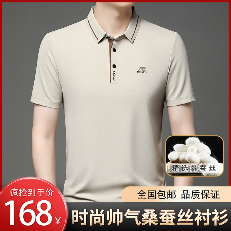 男士桑蚕丝手感短袖T恤夏季薄款半袖体恤中年翻领冰丝凉感POLO衫25RMB立即购买>