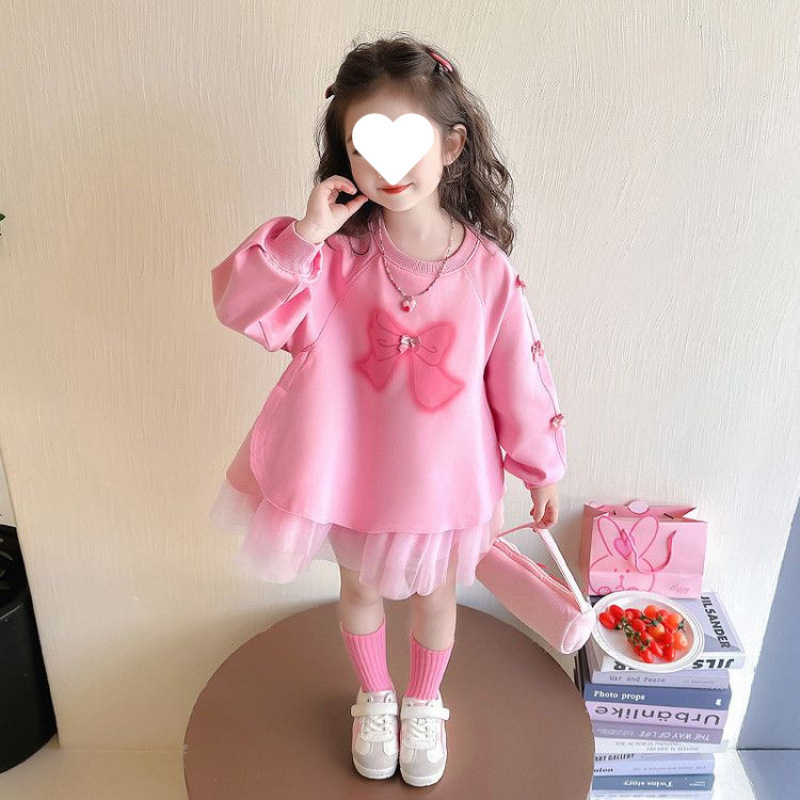 여자 드레스 봄 드레스 2025 새로운 스타일 어린이 드레스 아기 공주 드레스 봄과 가을 메쉬 스웨터 드레스