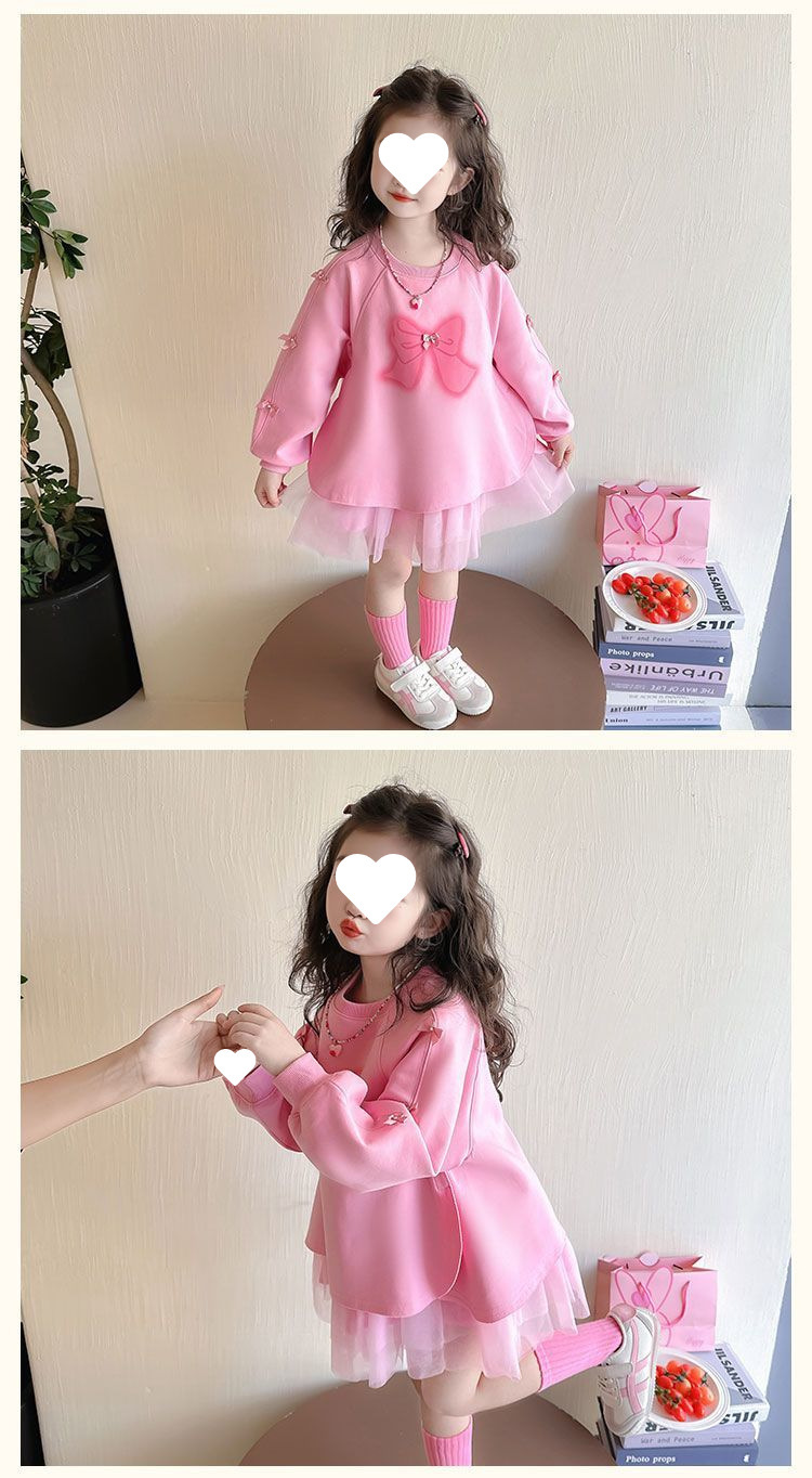 여자 드레스 봄 드레스 2025 새로운 스타일 어린이 드레스 아기 공주 드레스 봄과 가을 메쉬 스웨터 드레스스토어 가기