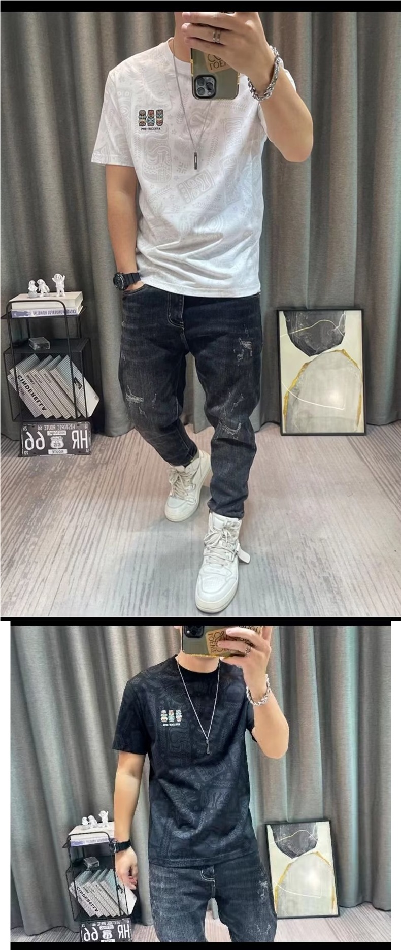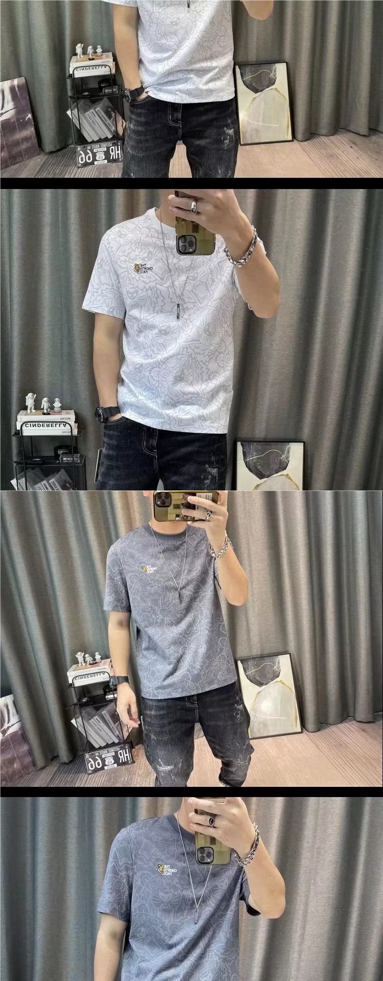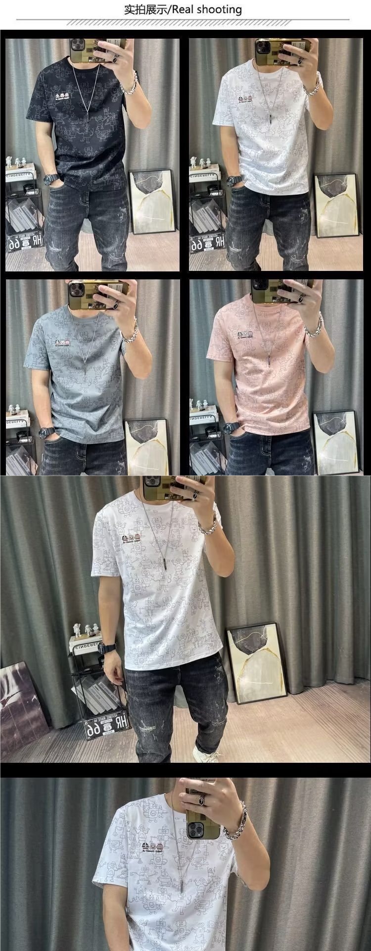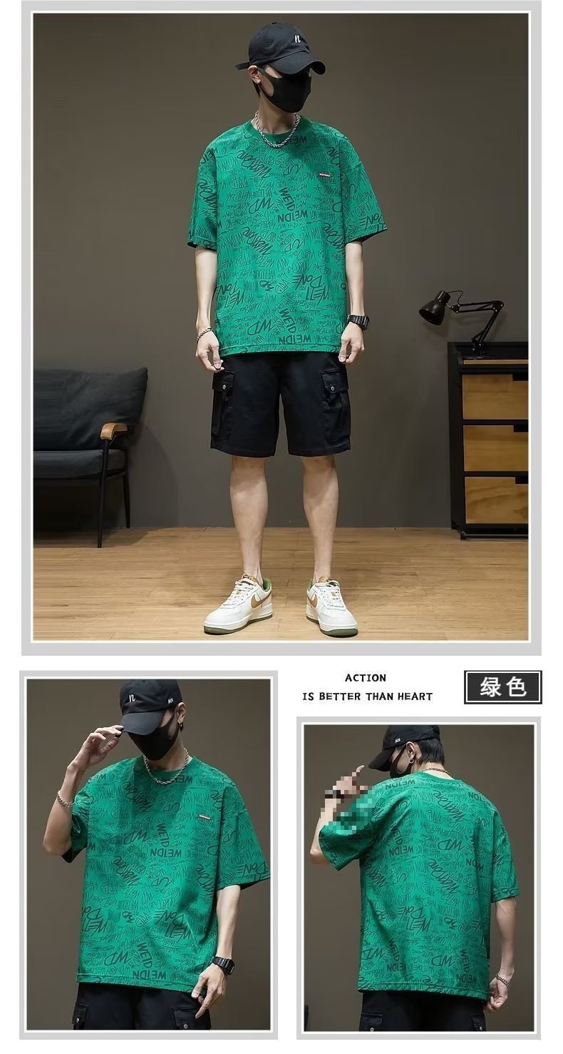 반팔 티셔츠 남성용 여름 유행 캐주얼 반소매 티셔츠베이스 셔츠 인쇄 된 트렌디 브랜드 남성용 탑 옷