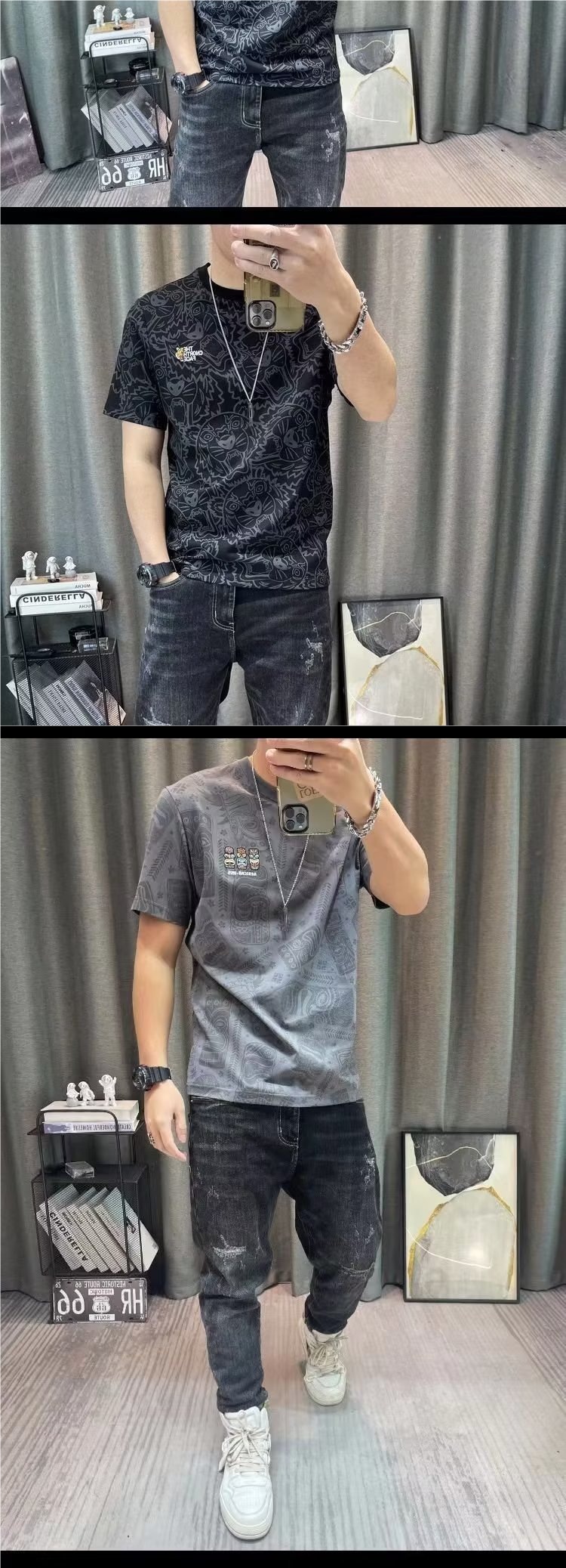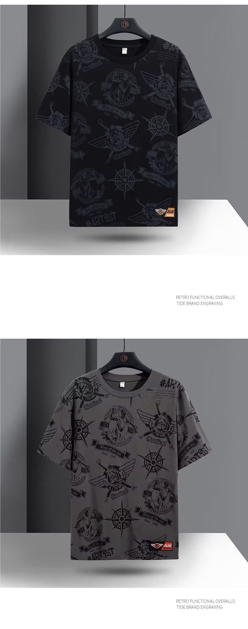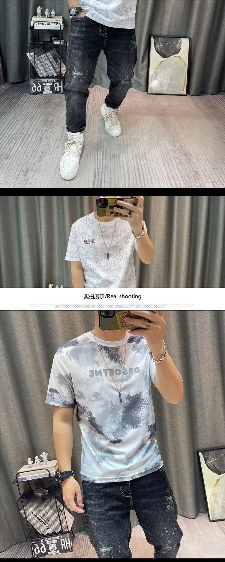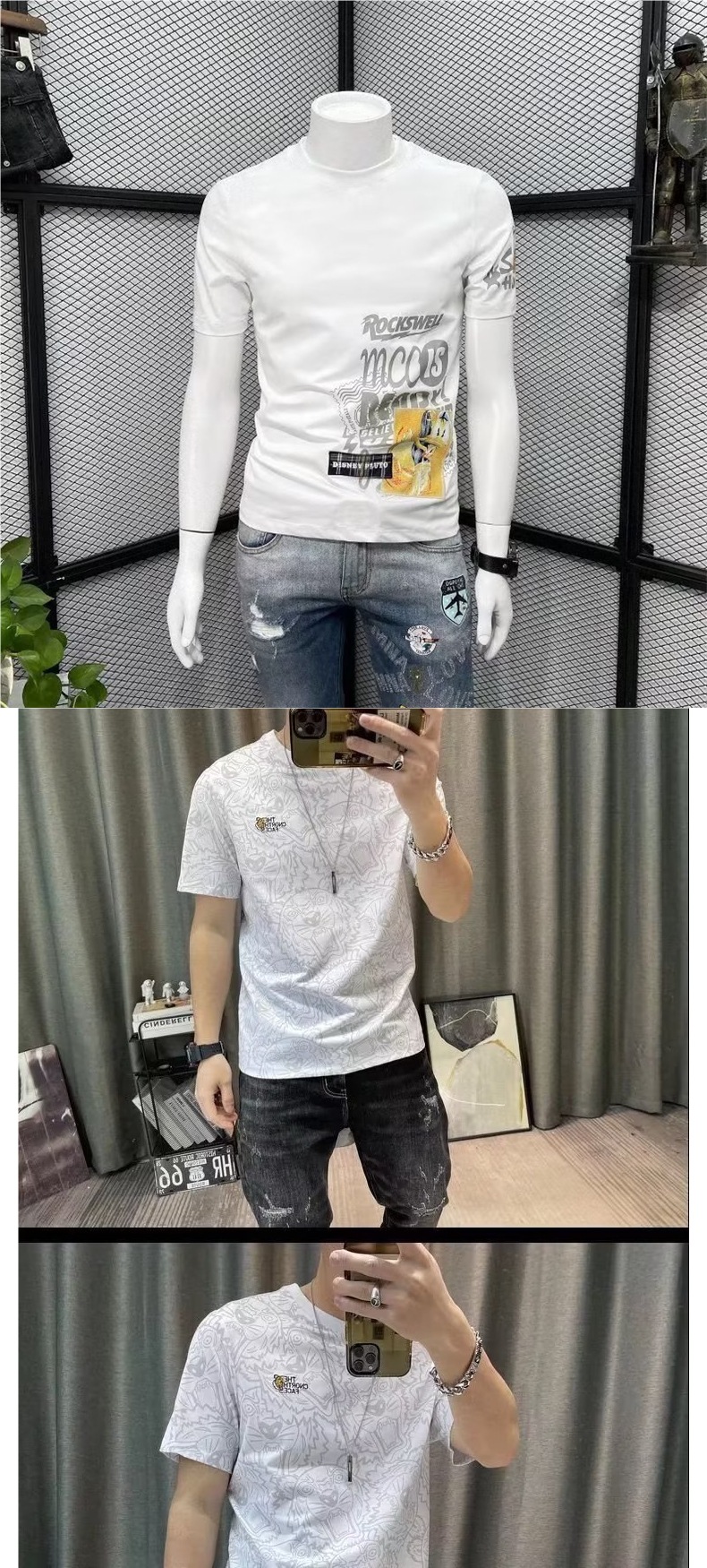 반팔 티셔츠 남성용 여름 유행 캐주얼 반소매 티셔츠베이스 셔츠 인쇄 된 트렌디 브랜드 남성용 탑 옷