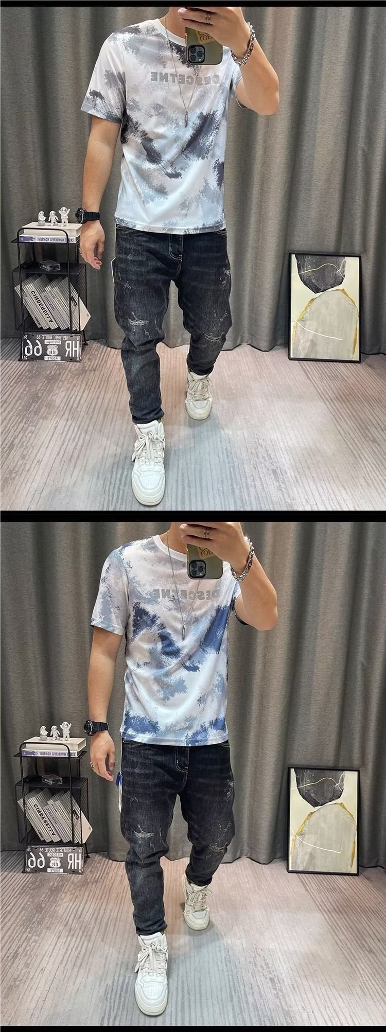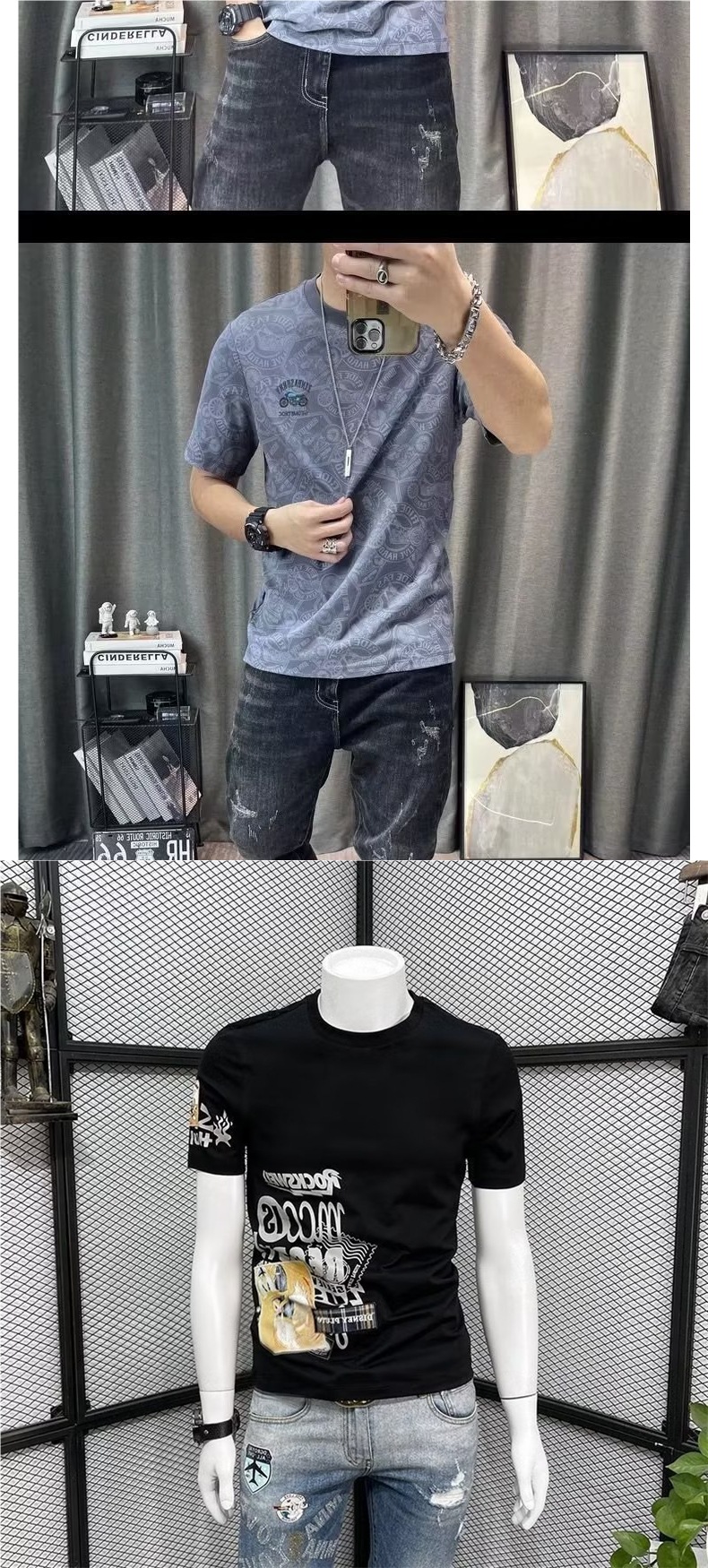 반팔 티셔츠 남성용 여름 유행 캐주얼 반소매 티셔츠베이스 셔츠 인쇄 된 트렌디 브랜드 남성용 탑 옷스토어 가기