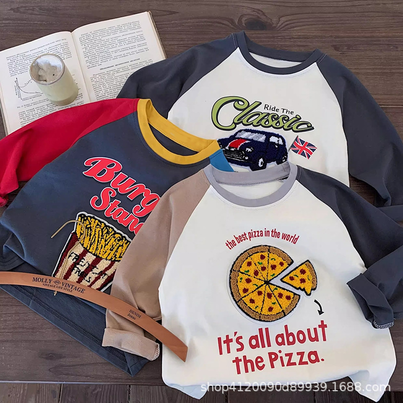 혼합 배치 면화 어린이 티셔츠 만화 긴 소매 봄 유행 브랜드 소년 최고의 아기 한국 스타일 가을 어린이 착용