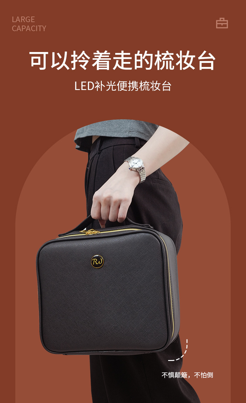 ✅거울 LED 가벼운 감각이있는 화장품 가방 국경 휴대용 저장 가방 대용량 휴대용 하이라이트 여행스토어 가기