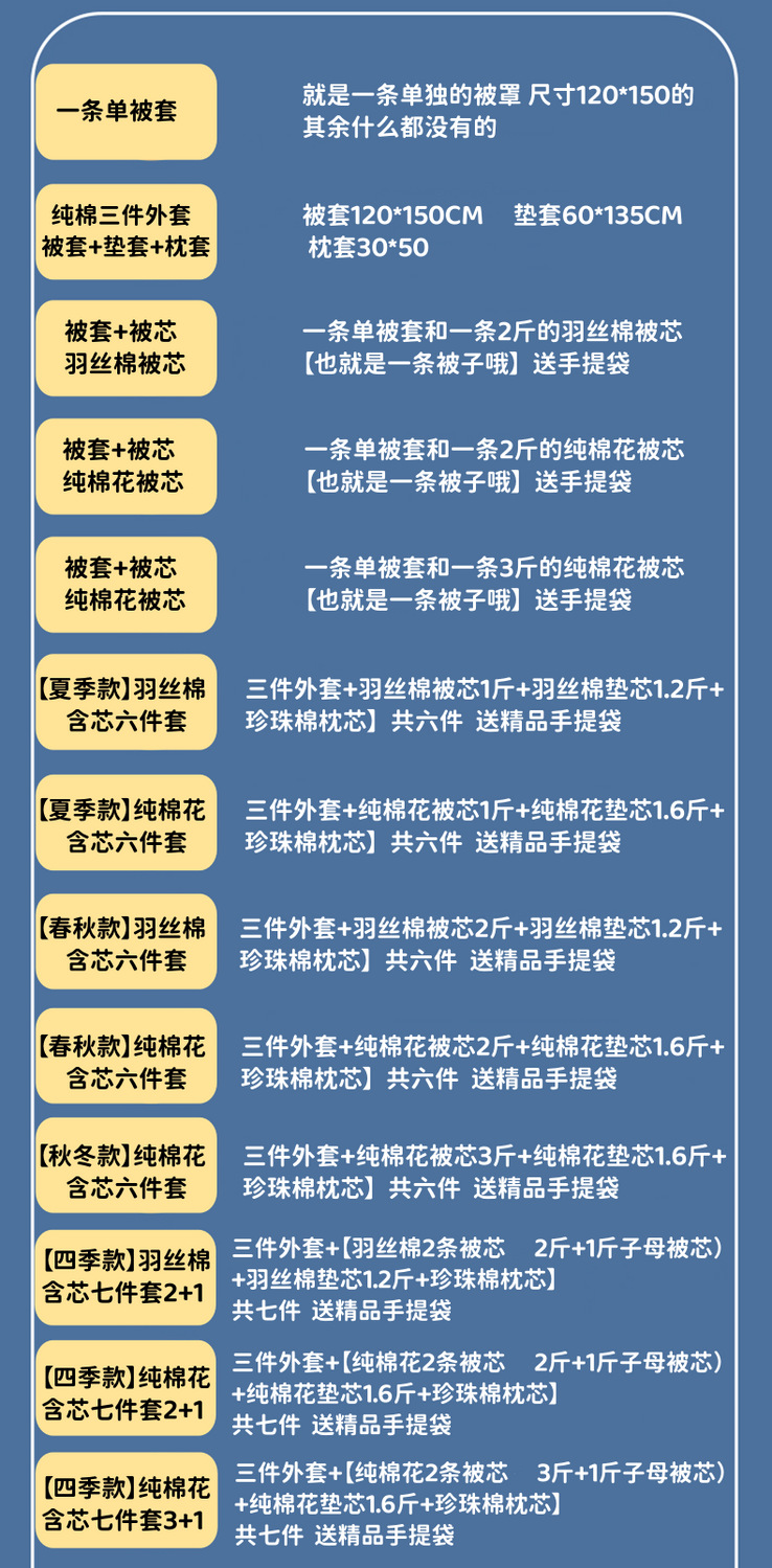 • 사계절/7종 실크 치실 세트[이불, 쿠션, 베개] 핸드백 포함