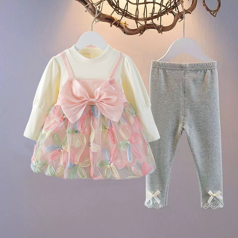 새 소녀 원피스 봄과 가을 소녀 스커트 아기 세트 공주 스커트