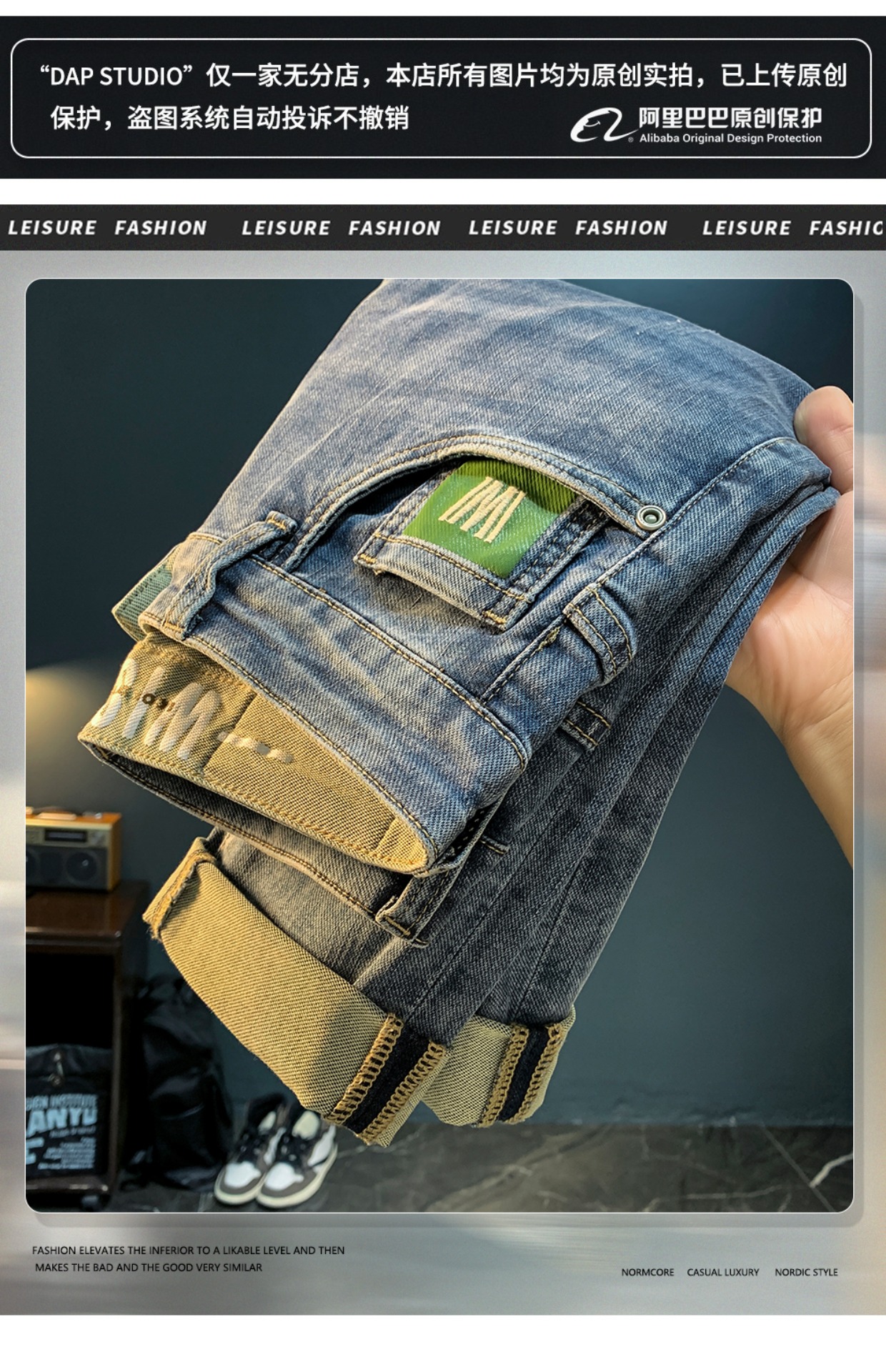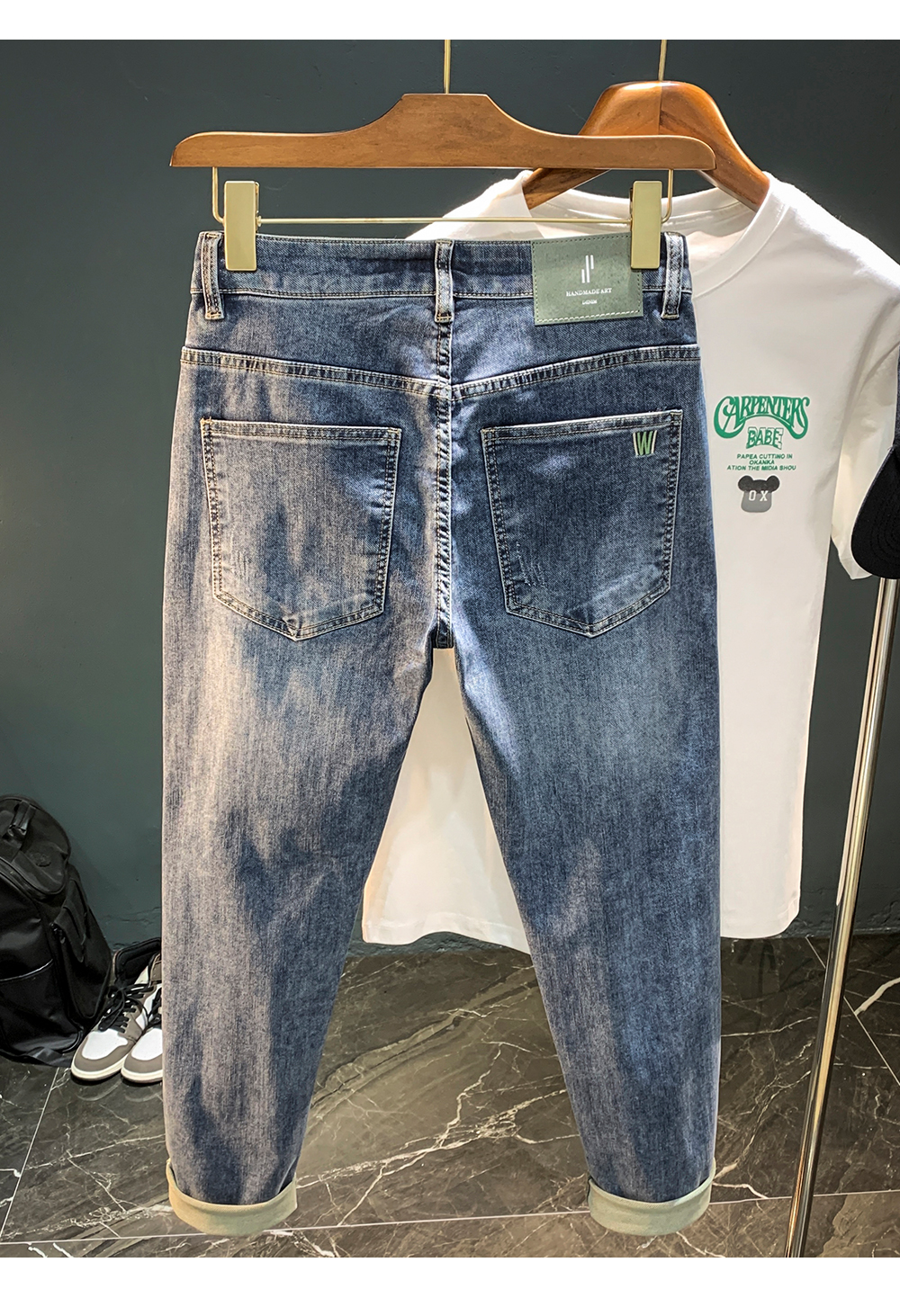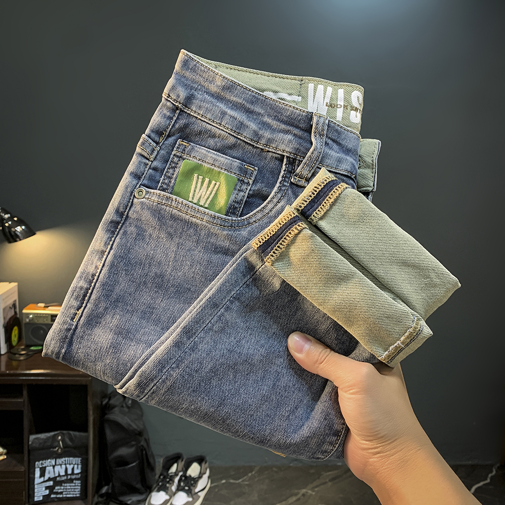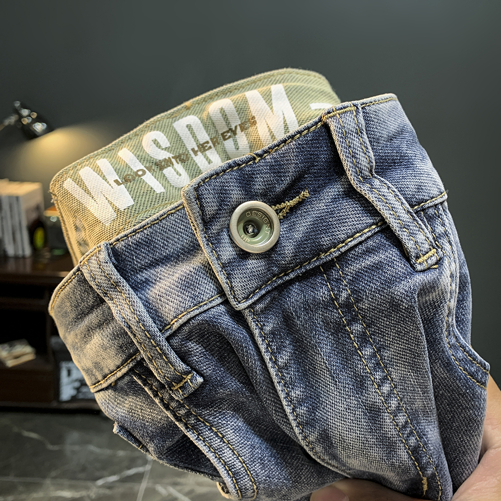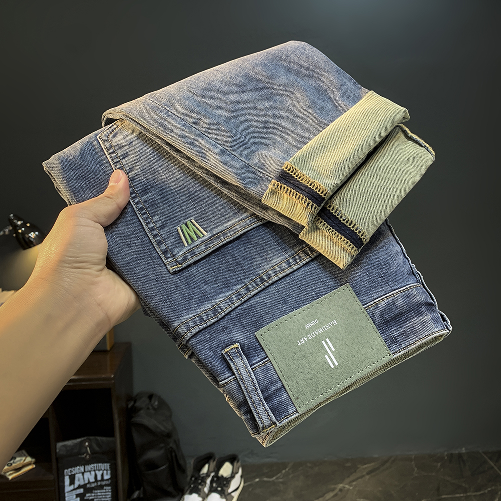 하이 엔드 남성 청바지 2025 봄과 가을 새로운 슬림 핏 스키니 팬츠 자수 유행 캐주얼 하렘 남성용 바지스토어 가기