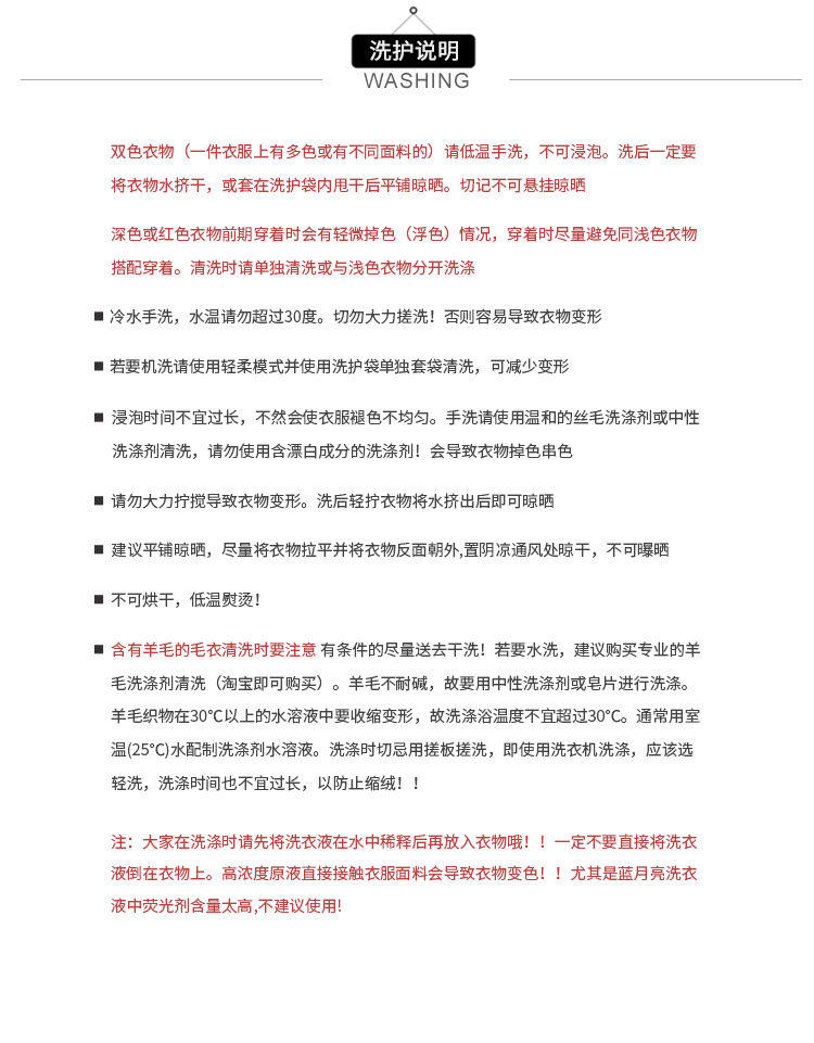 | 2.尺寸:衣服尺码均为手工测量,误差在2-3cm属于正常范围 | ||||