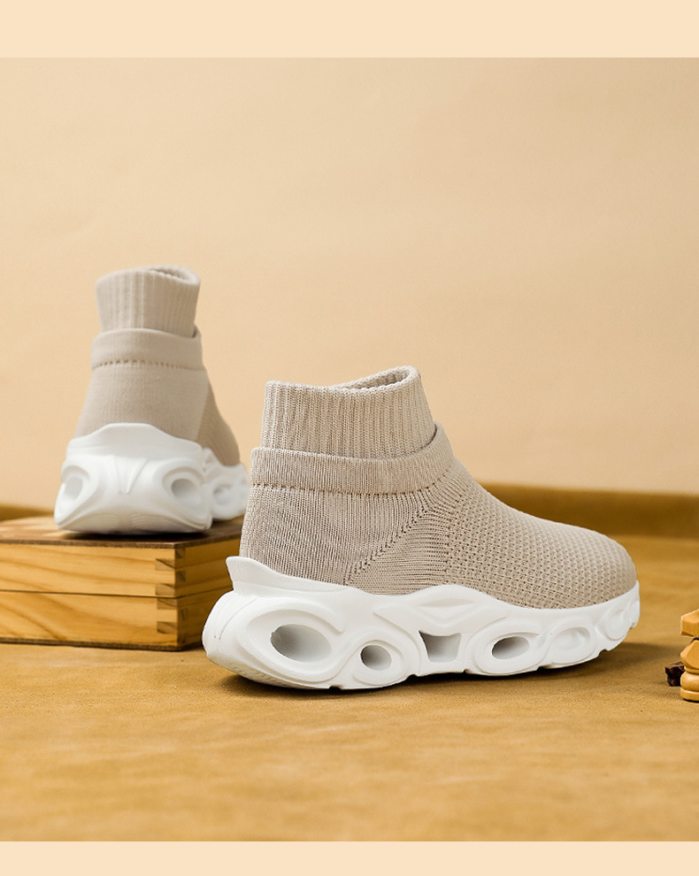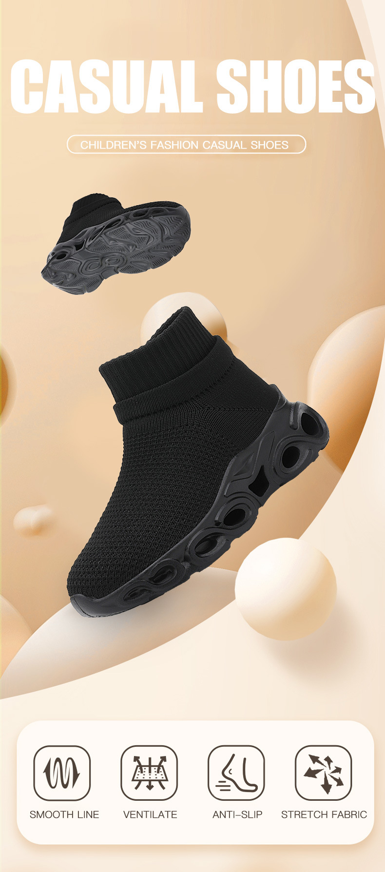 국경 간 어린이 양말 신발 소년과 소녀 패션 통기성 편안한 미끄럼 방지 소프트 하단 캐주얼 러닝 신발 스포츠 플라이 니트 신발