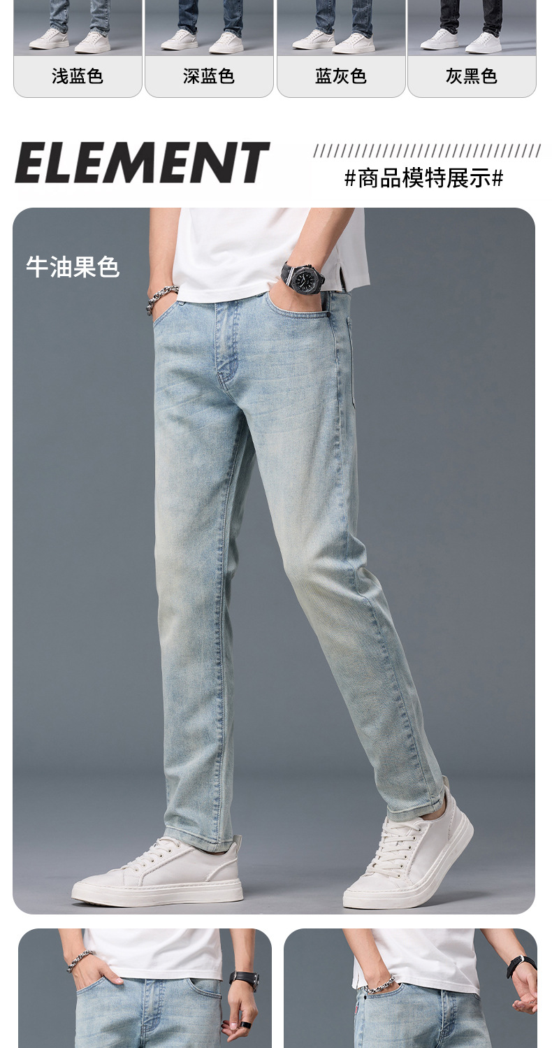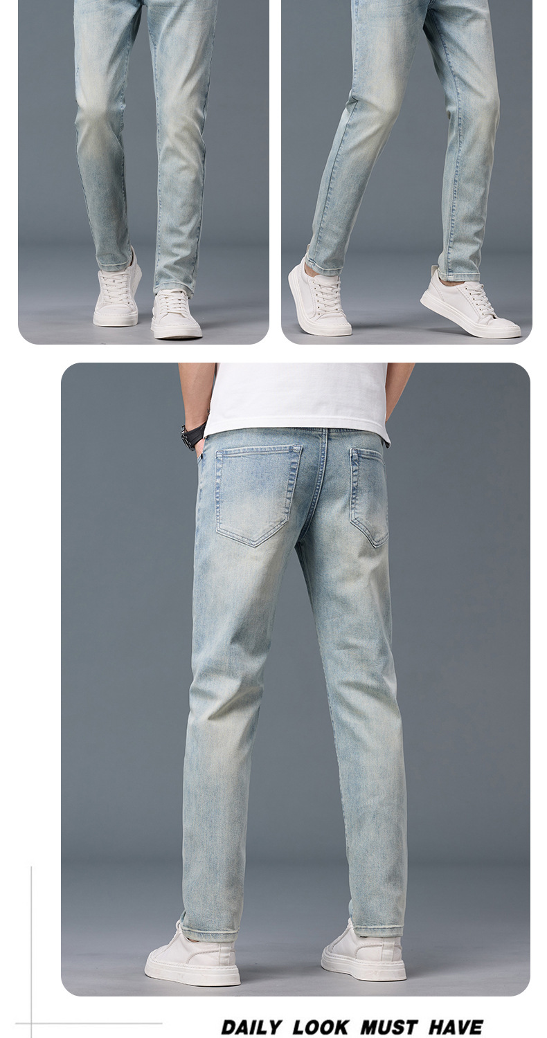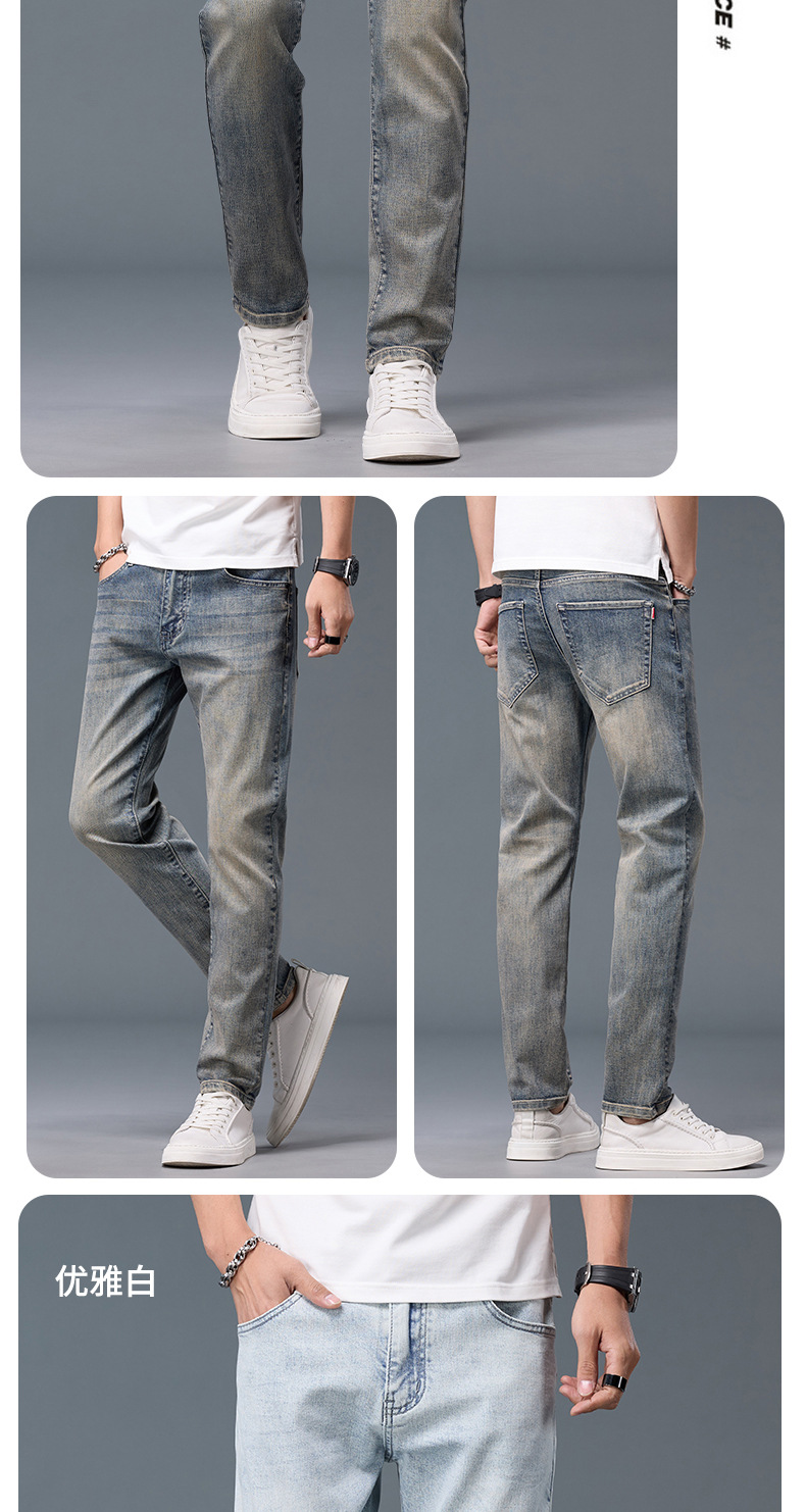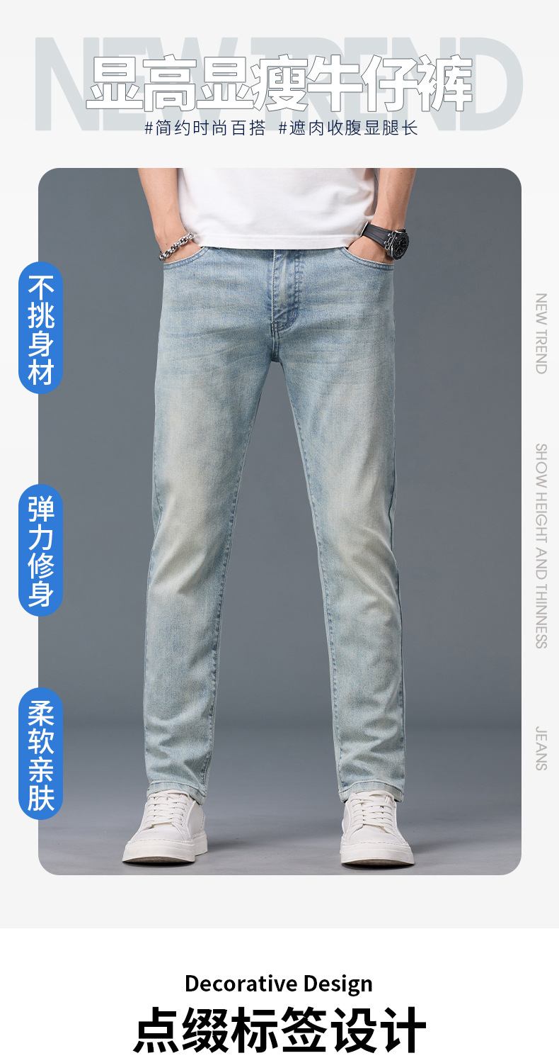 봄과 여름 2025 새로운 유행 스트레치 슬림 핏 한국 스타일 남성 청바지 남성 캐주얼 바지 820스토어 가기