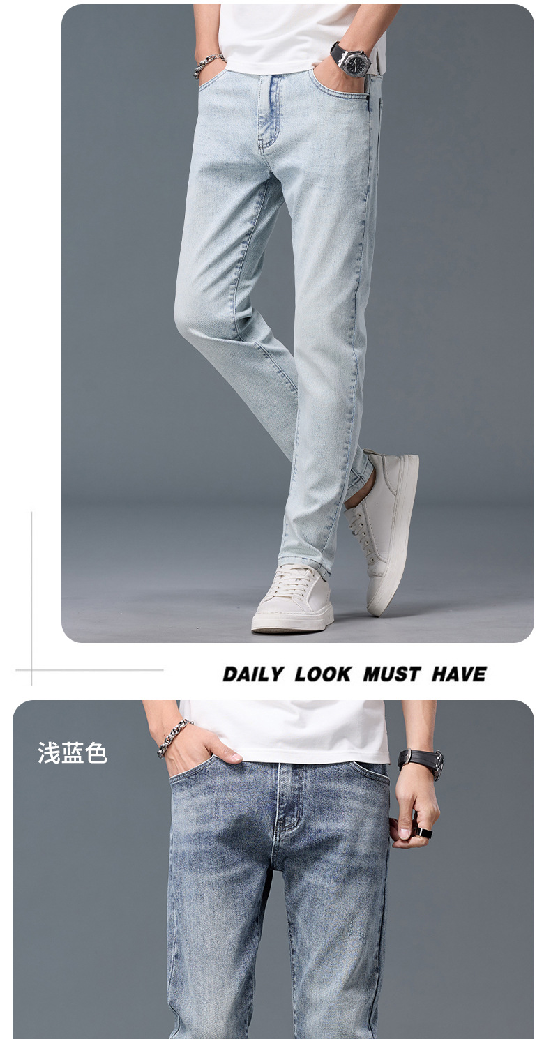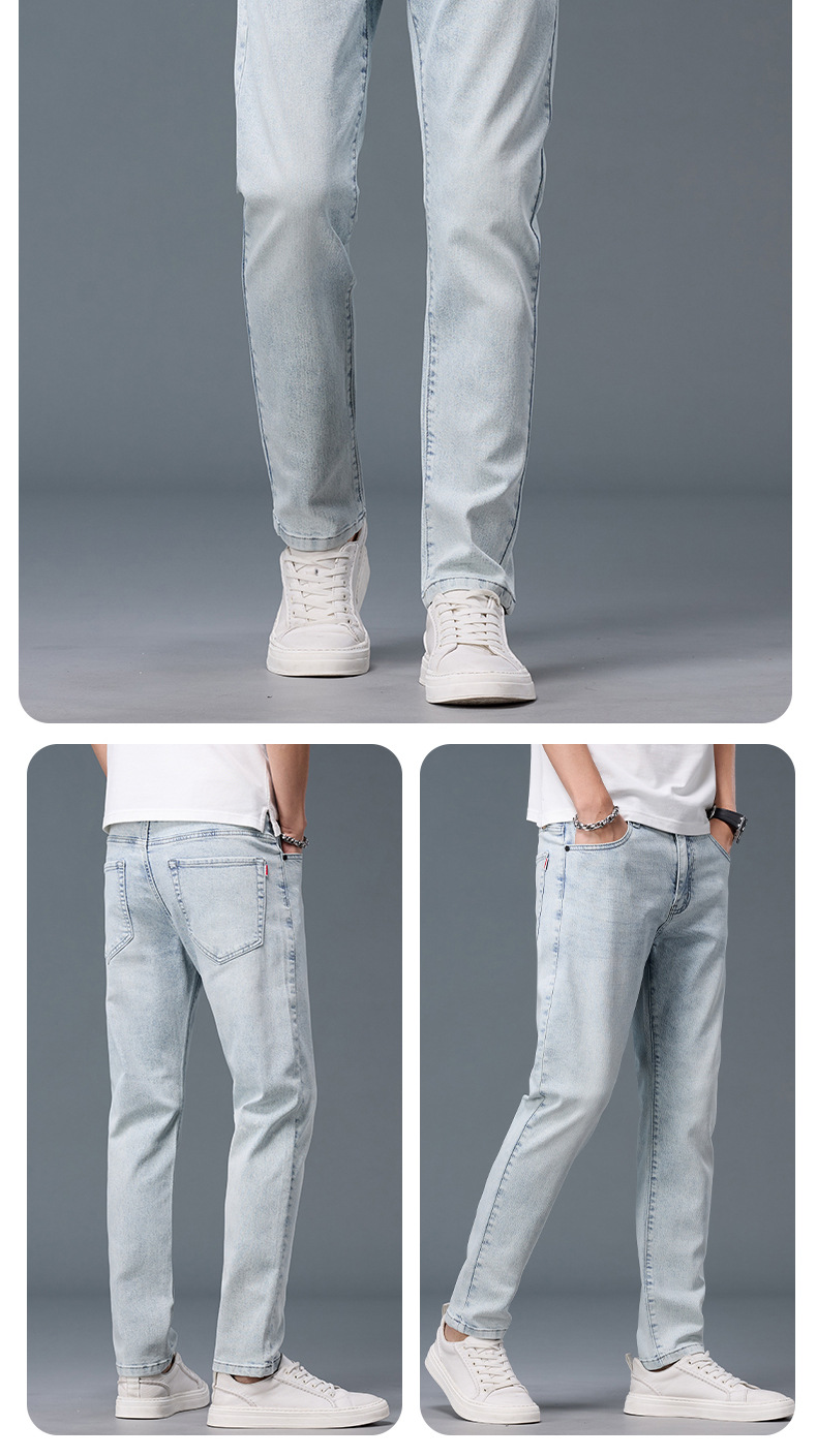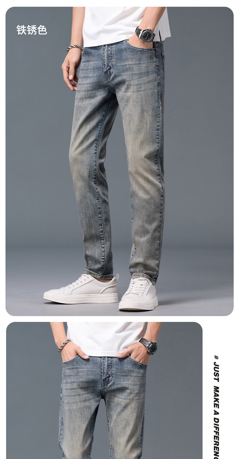 봄과 여름 2025 새로운 유행 스트레치 슬림 핏 한국 스타일 남성 청바지 남성 캐주얼 바지 820스토어 가기