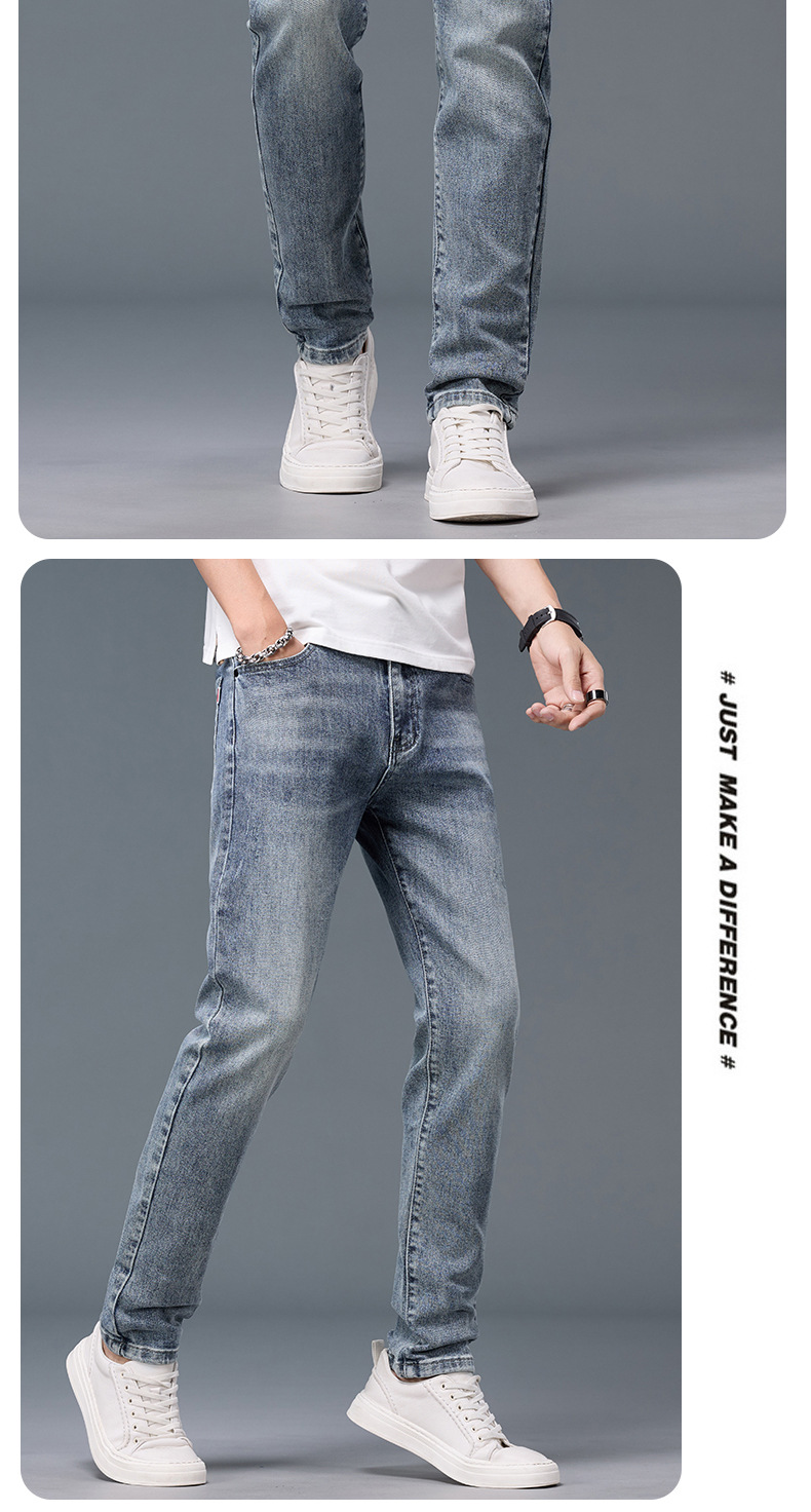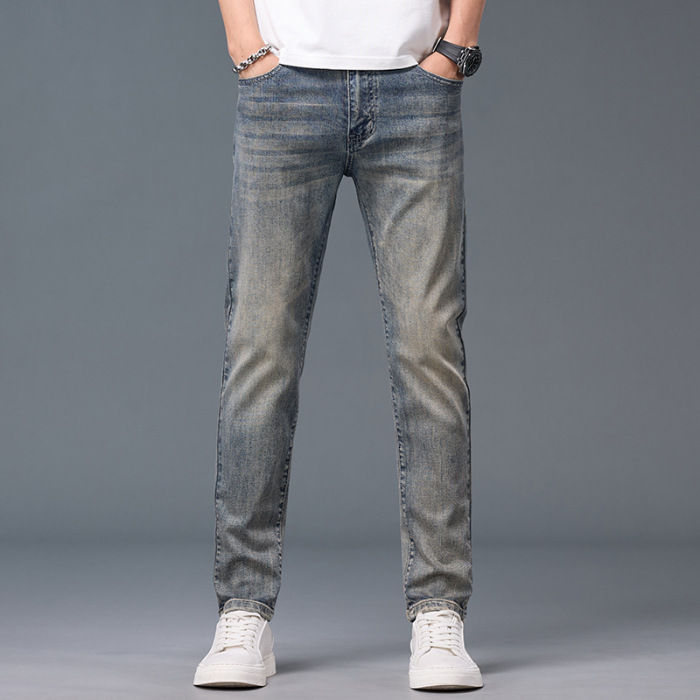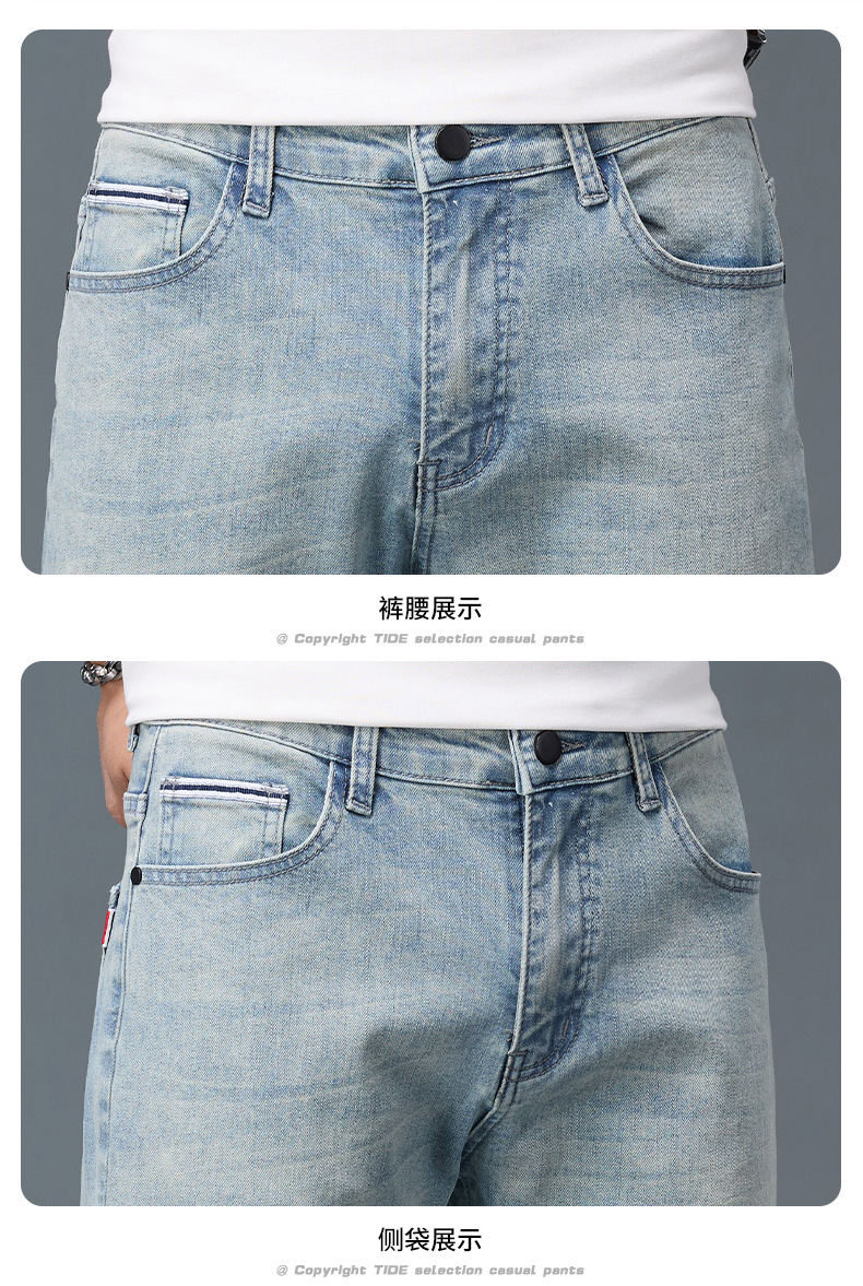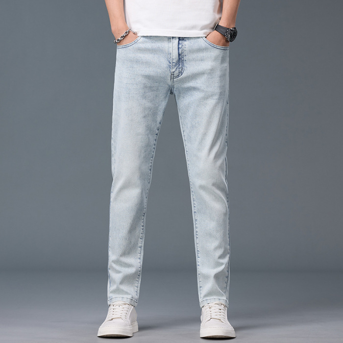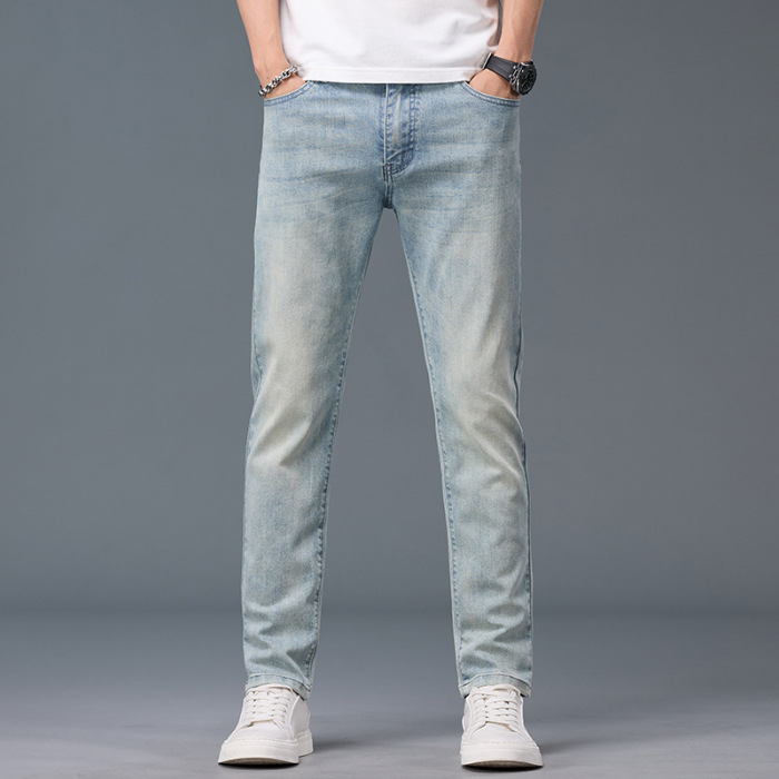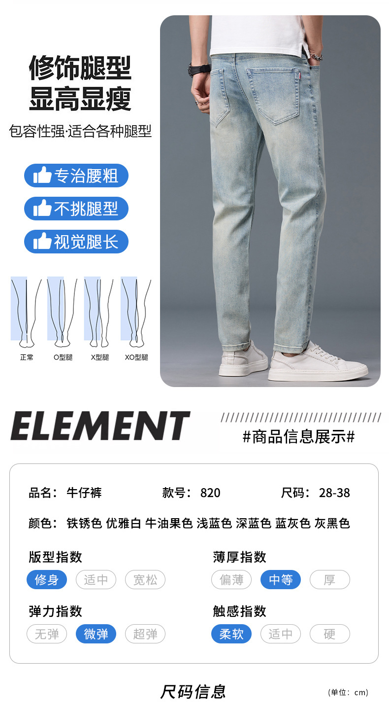 봄과 여름 2025 새로운 유행 스트레치 슬림 핏 한국 스타일 남성 청바지 남성 캐주얼 바지 820스토어 가기