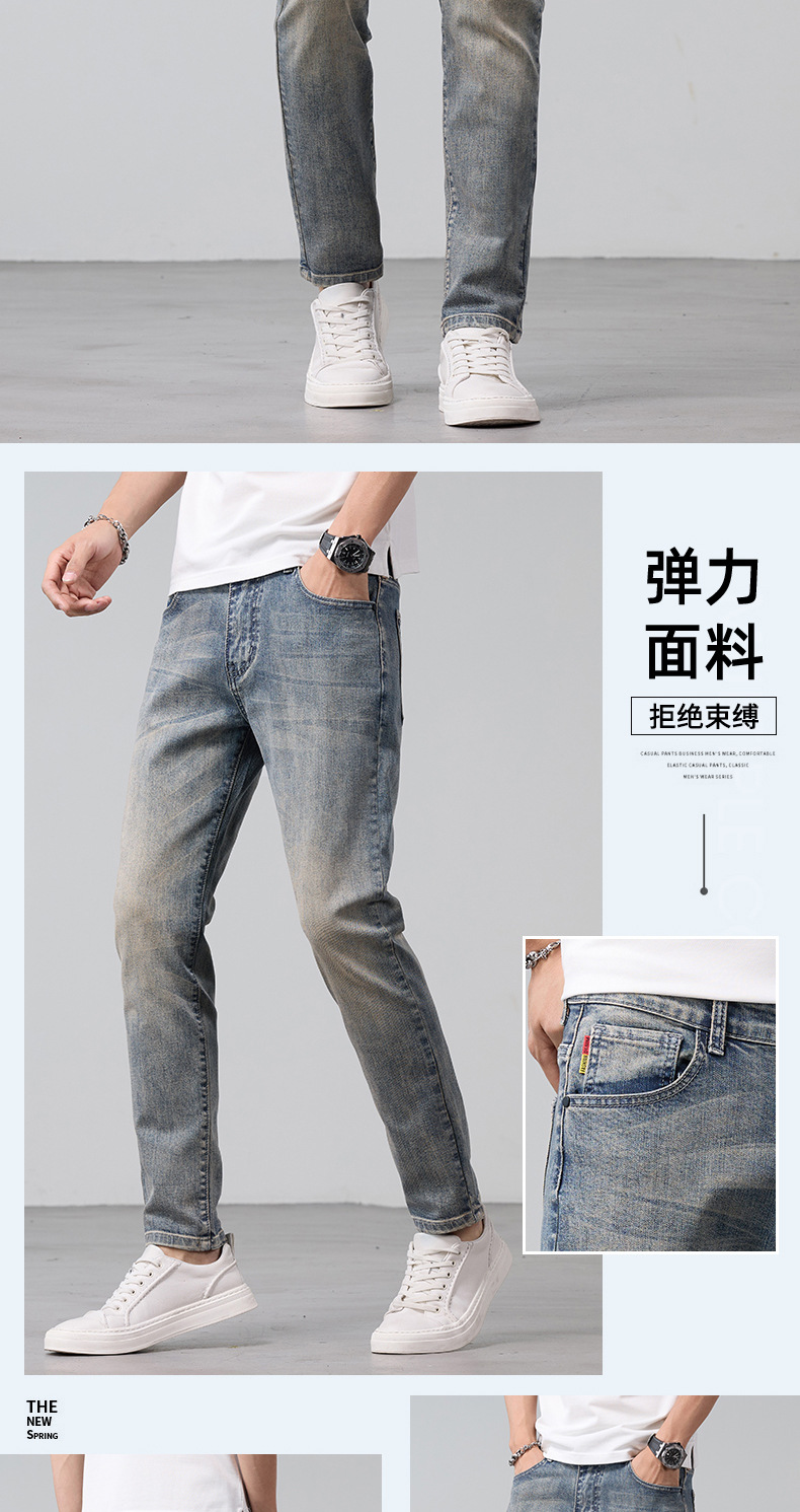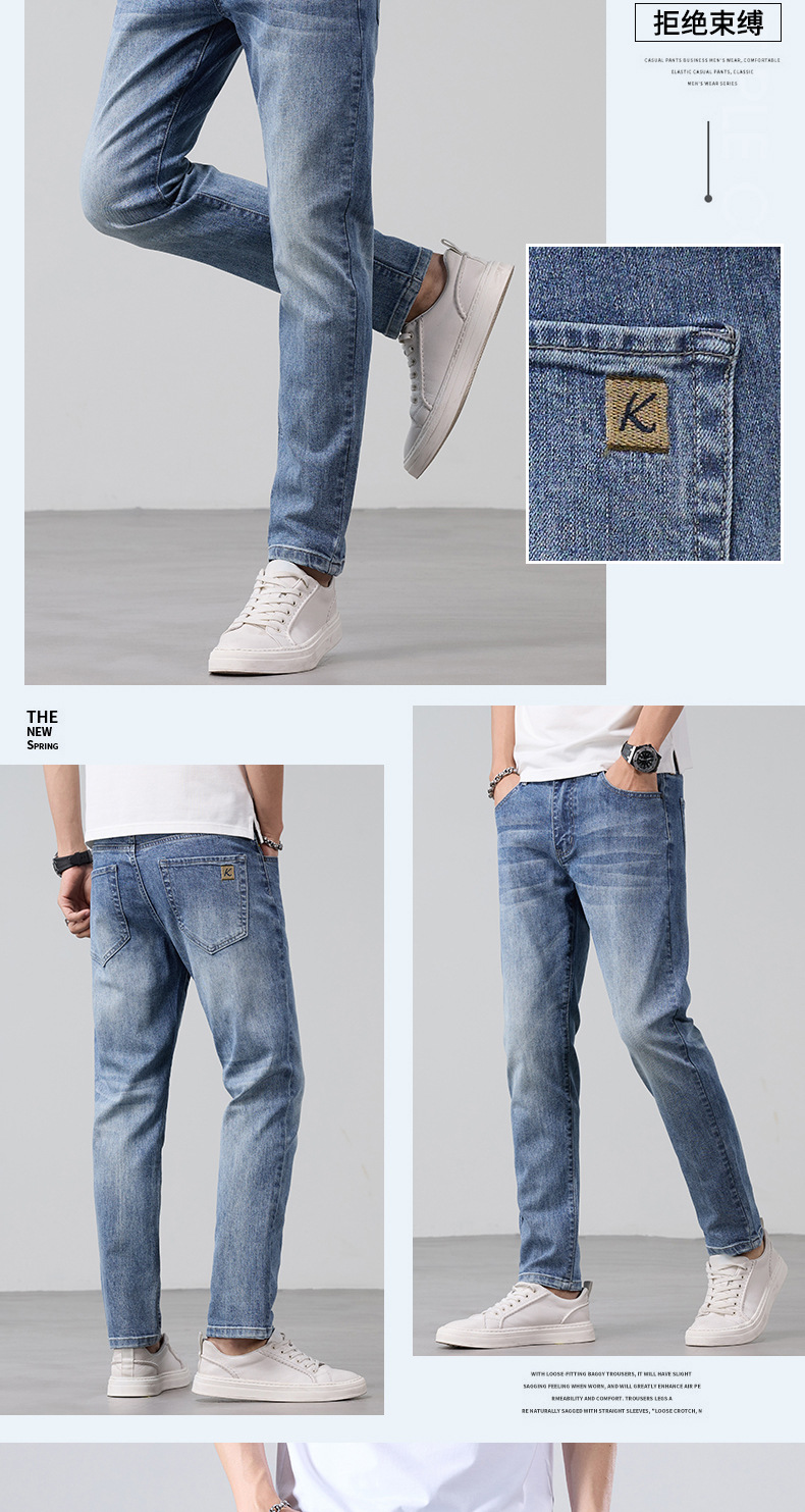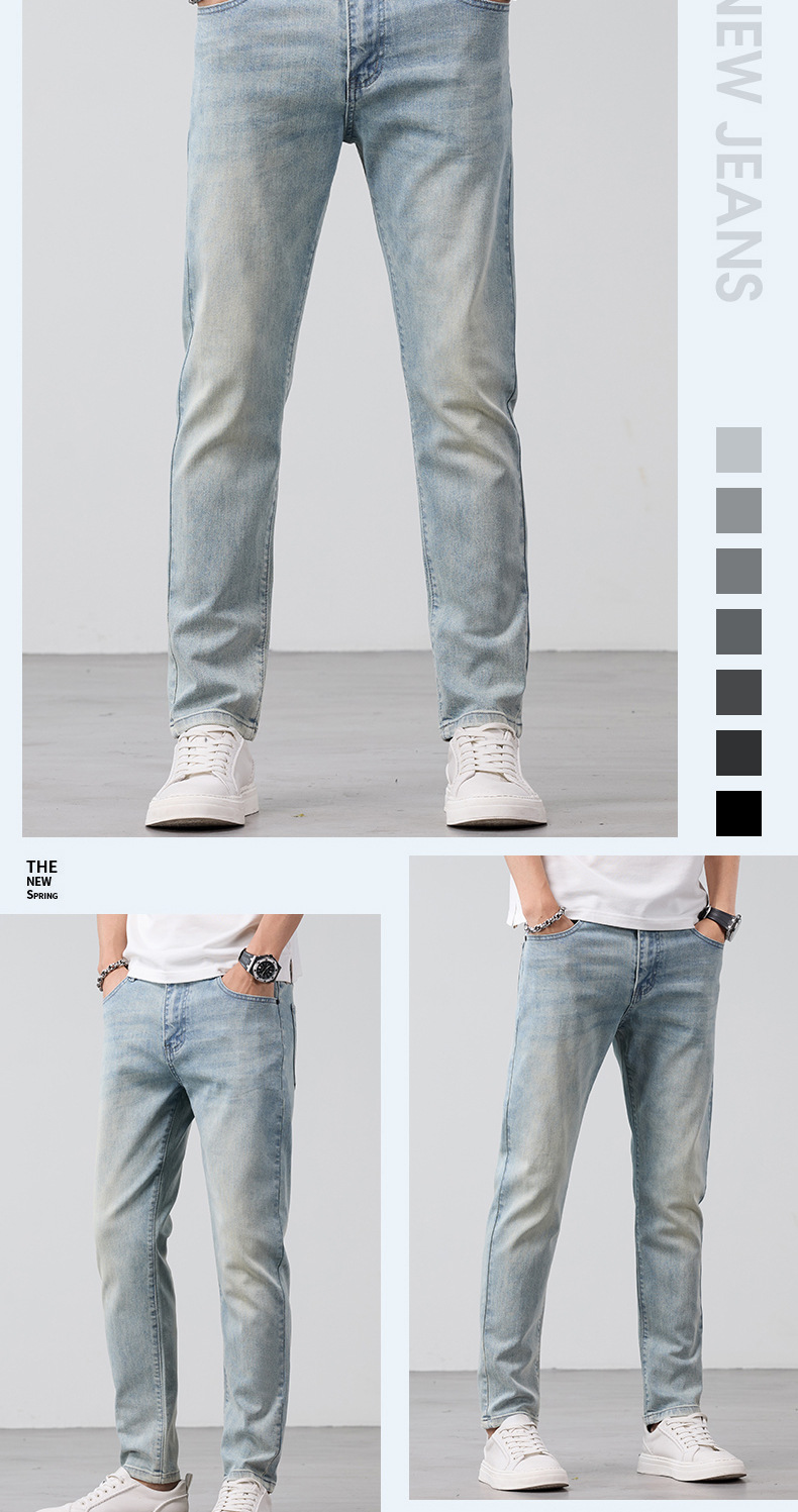 봄과 여름 2025 새로운 스트레치 슬림 핏 한국 스타일 남성 청바지 남성 캐주얼 바지 Aocado 839