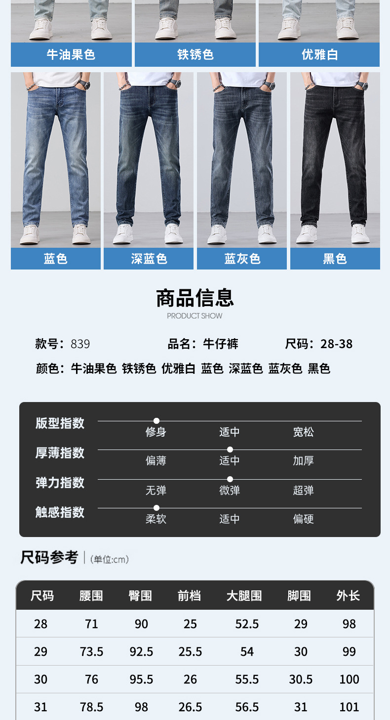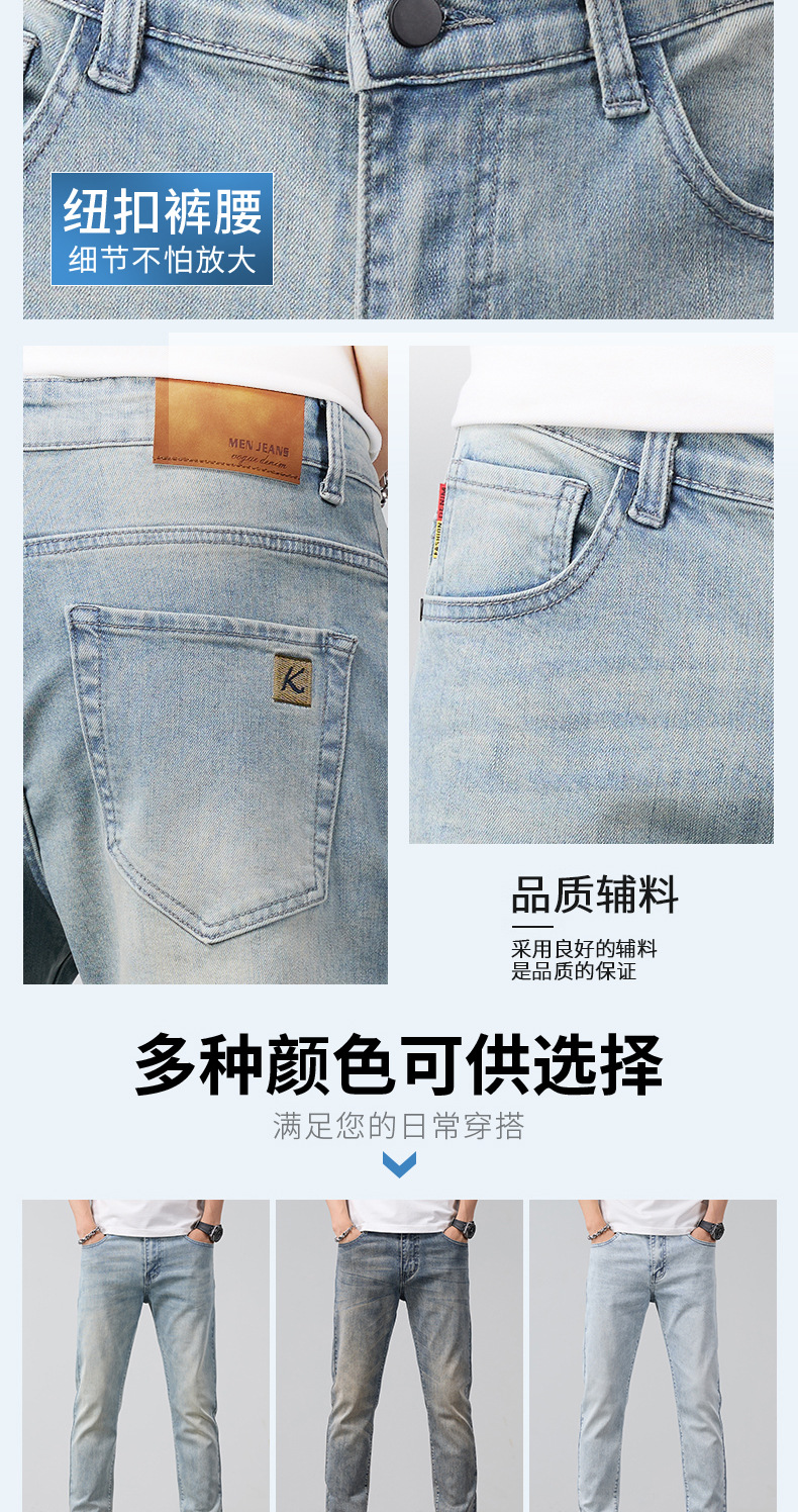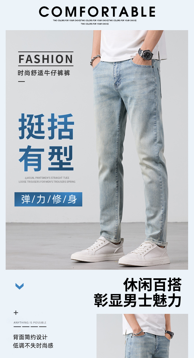 봄과 여름 2025 새로운 스트레치 슬림 핏 한국 스타일 남성 청바지 남성 캐주얼 바지 Aocado 839