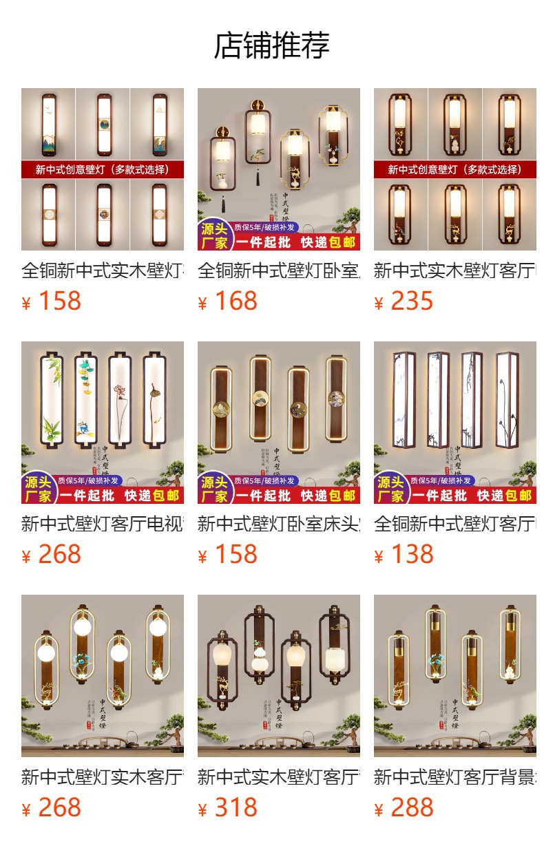 새로운 중국 스타일의 단단한 나무 벽 램프 선 중국 스타일의 거실 TV 배경 벽 침실 침대 옆 램프 복도 램프스토어 가기