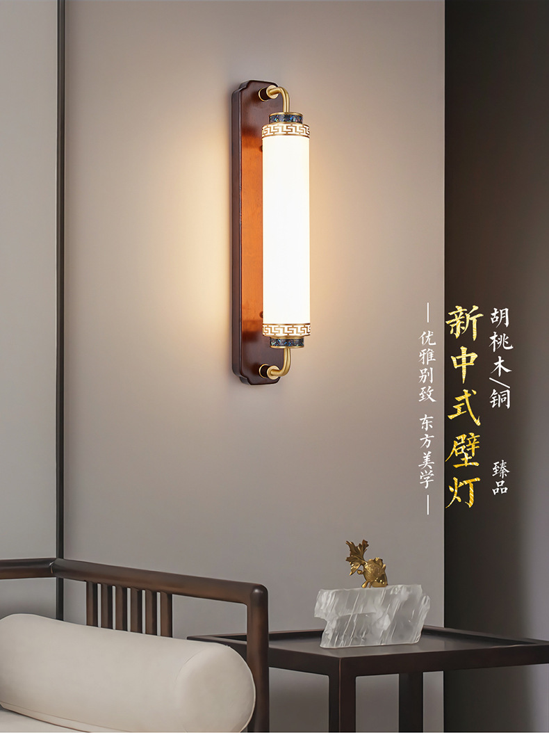 새로운 중국 스타일의 단단한 나무 벽 램프 선 중국 스타일의 거실 TV 배경 벽 침실 침대 옆 램프 복도 램프