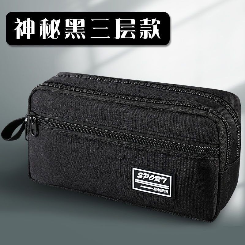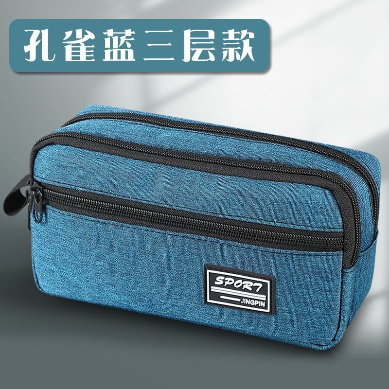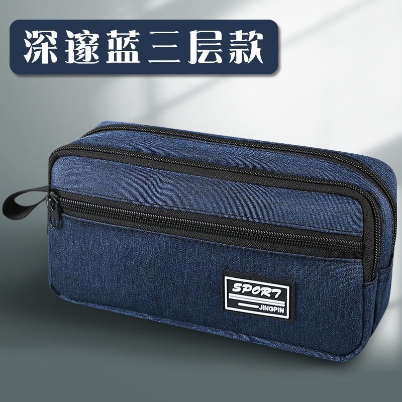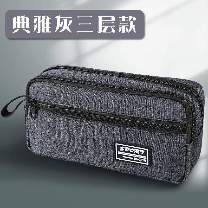 연필 가방 남성 일본식 연필 가방 대용량 납 방수 간단한 문구 가방 학생 및 초등학생을위한 3 층 문구 상자 남성 전문가